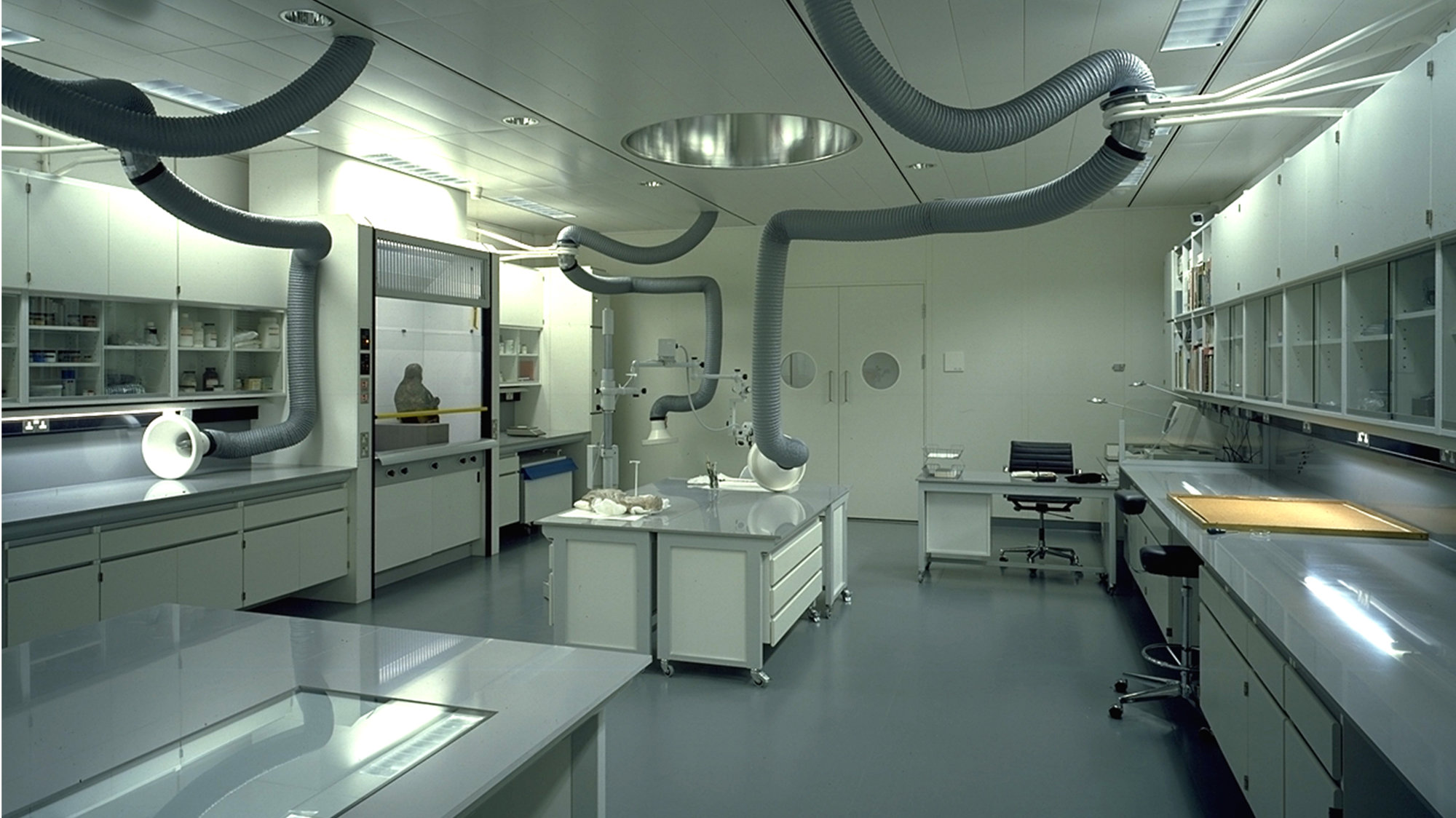 The Sainsbury Centre for Visual Arts was completed in 1978. In addition to housing Sir Robert and Lady Sainsbury’s collection of modern and ethnographic art, it combines two exhibition galleries, the Faculty of Fine Arts, a common room and a public restaurant beneath a large single-span roof, and provides storage and workshop facilities in the basement. The opportunity to extend the building arose in 1988 with a major new gift from the Sainsburys to provide additional facilities. The brief included extended space for the display of the reserve collection, together with areas for curatorial preparation and conservation and a gallery for exhibitions and conferences, giving the Centre far greater flexibility in its programming.