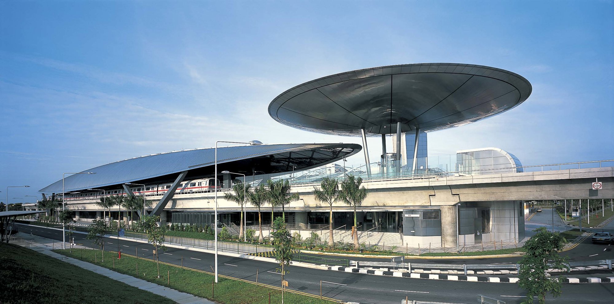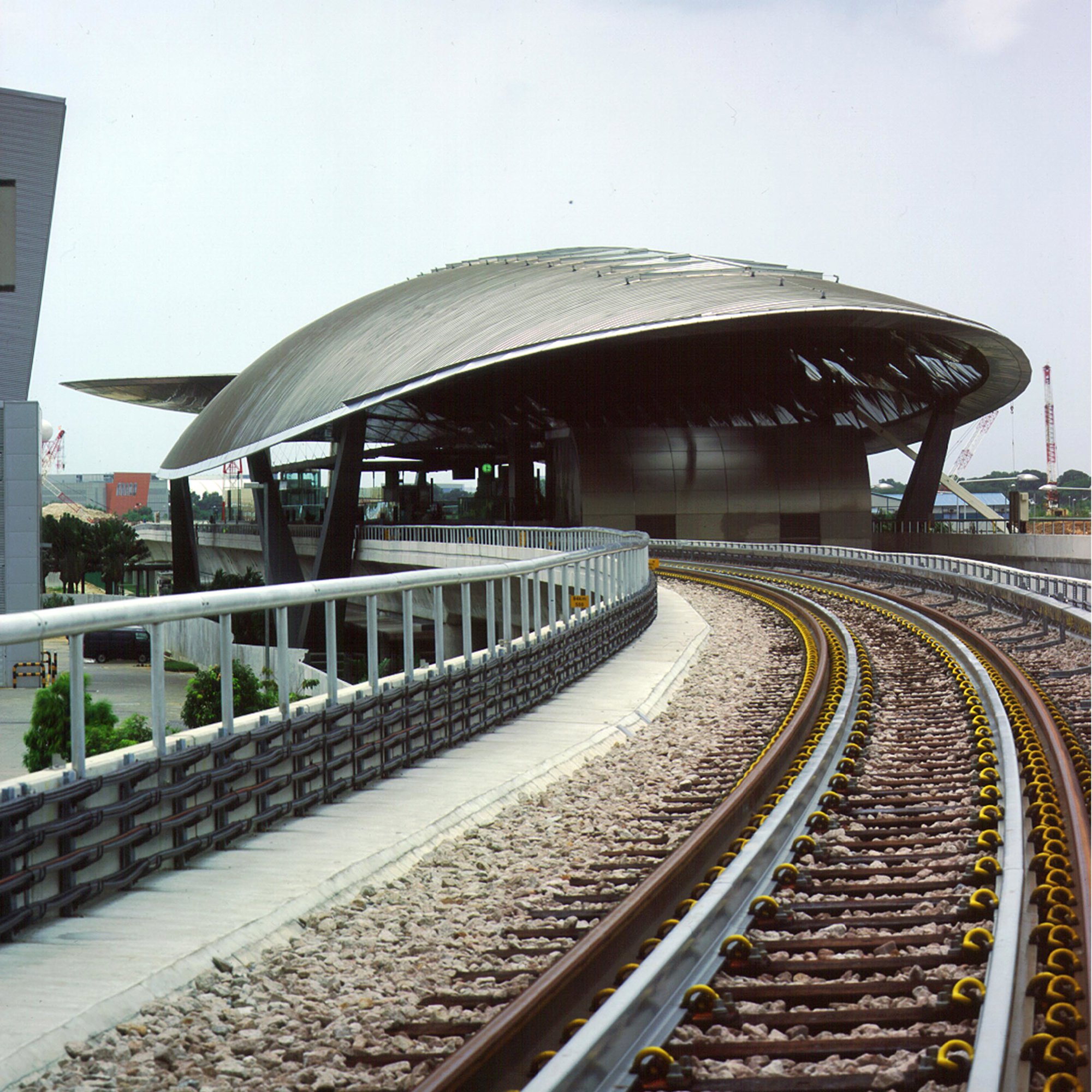 Railway stations, like airports, are often the first buildings that people experience when arriving in a city and they therefore have an important symbolic role as urban gateways. Singapores Expo Station is the first Mass Rapid Transport station that visitors to the city encounter when travelling along the new Changi Airport Line. Built to serve the new Singapore Expo Centre, its design is both a celebration of arrival and a response to one of the warmest climates in the world.