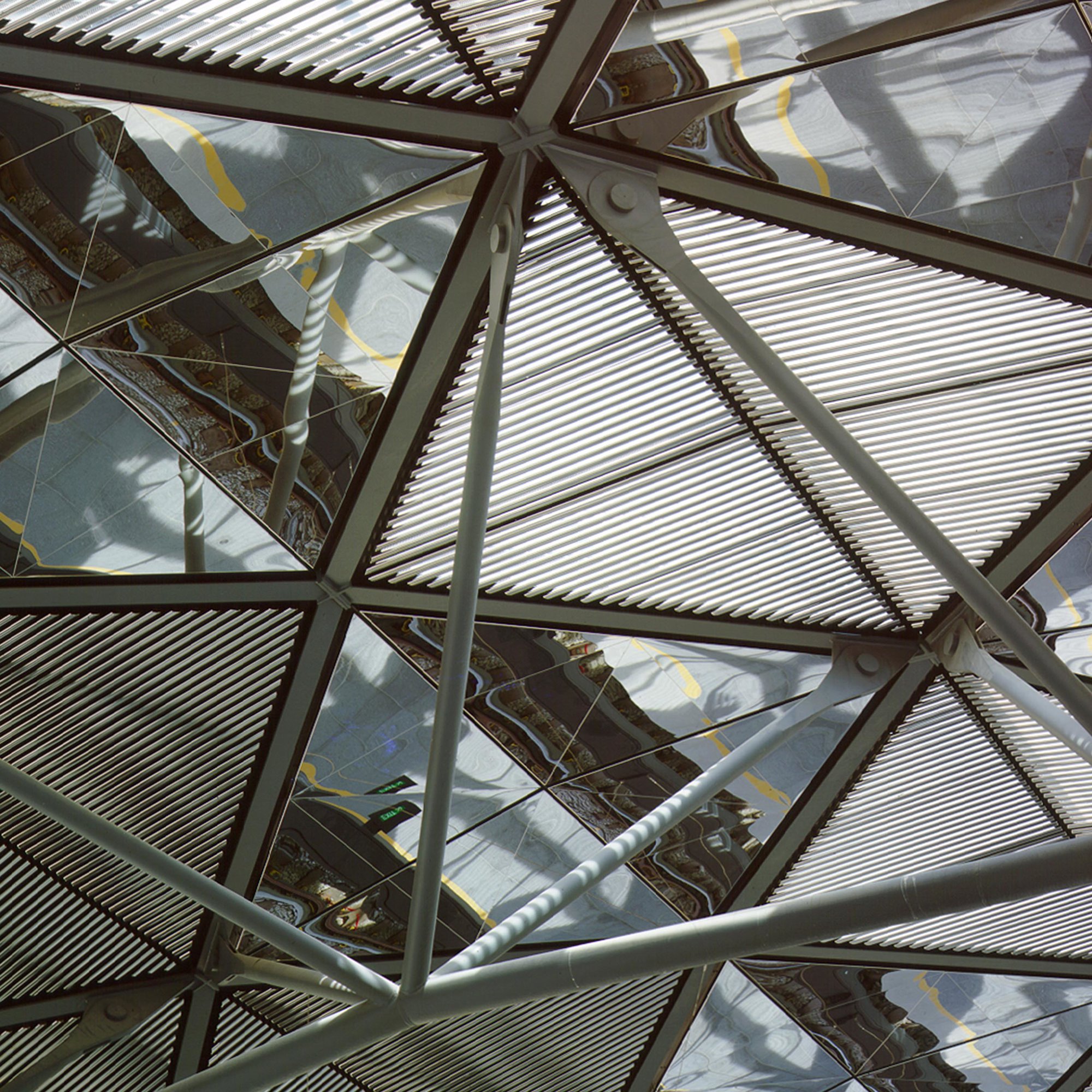 Environmentally, the stations open form has other benefits, encouraging a cooling flow of air through the building. The choice of roof materials also has an environmental significance. Internally, the polished metal surface reflects daylight down through the building, minimising the need for artificial lighting, while externally, the cladding deflects the suns rays, thus helping to create a microclimate on the platforms that is refreshingly up to four degrees cooler than the outside temperature.