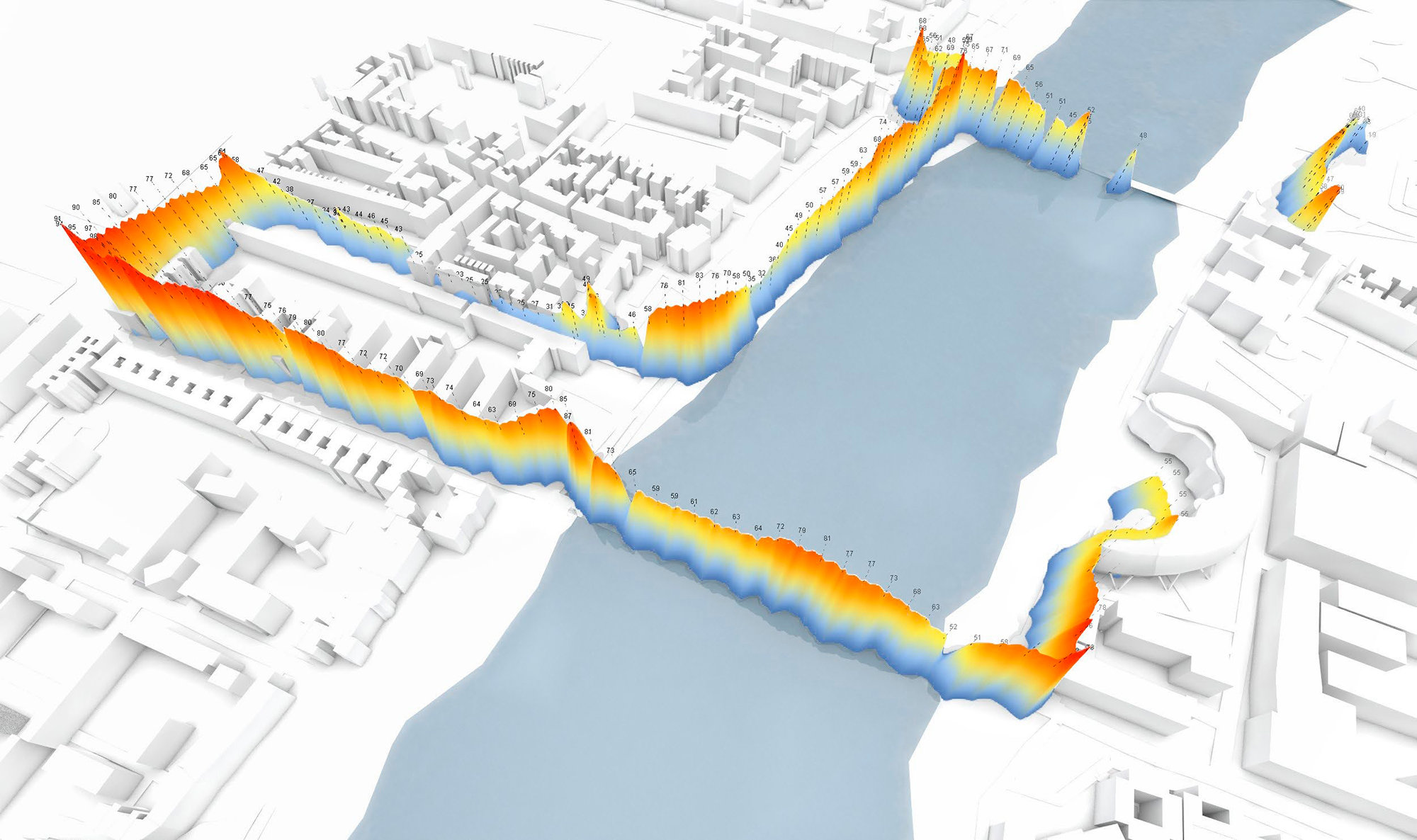 Initial study of stress levels around Foster + Partners’ campus in Battersea, London. © Foster + Partners