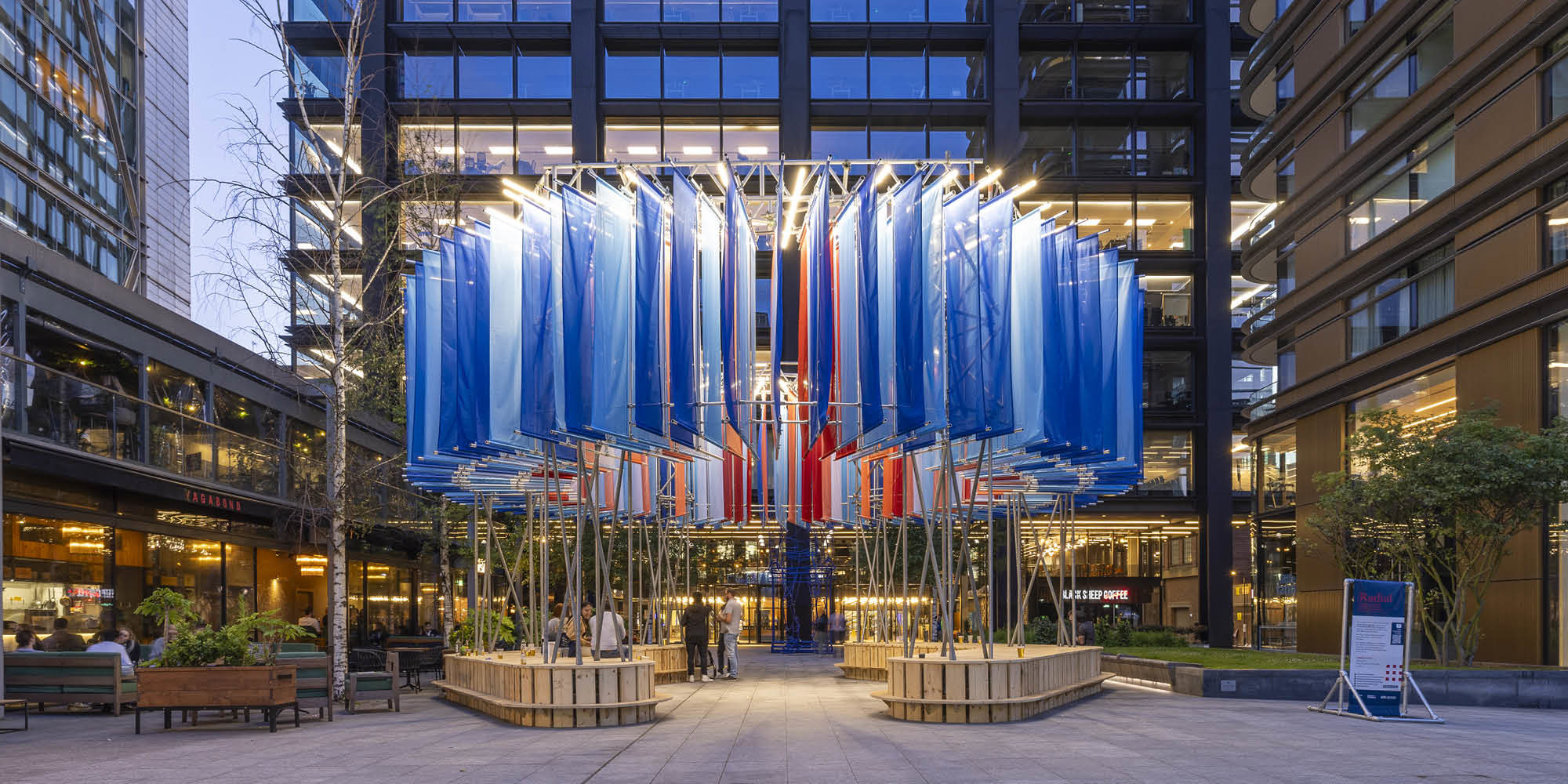 We sat down with Tom Bush, Associate Partner, and Alex Szal, Architectural Apprentice, who were part of the team that worked on the ‘Radial’ pavilion at Principal Place in London.