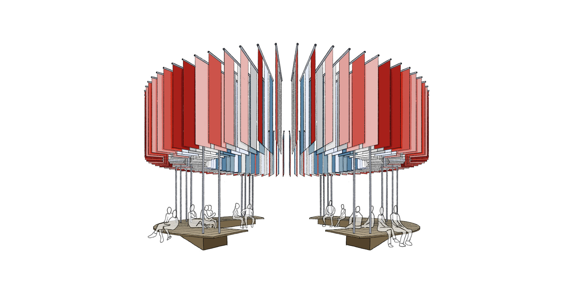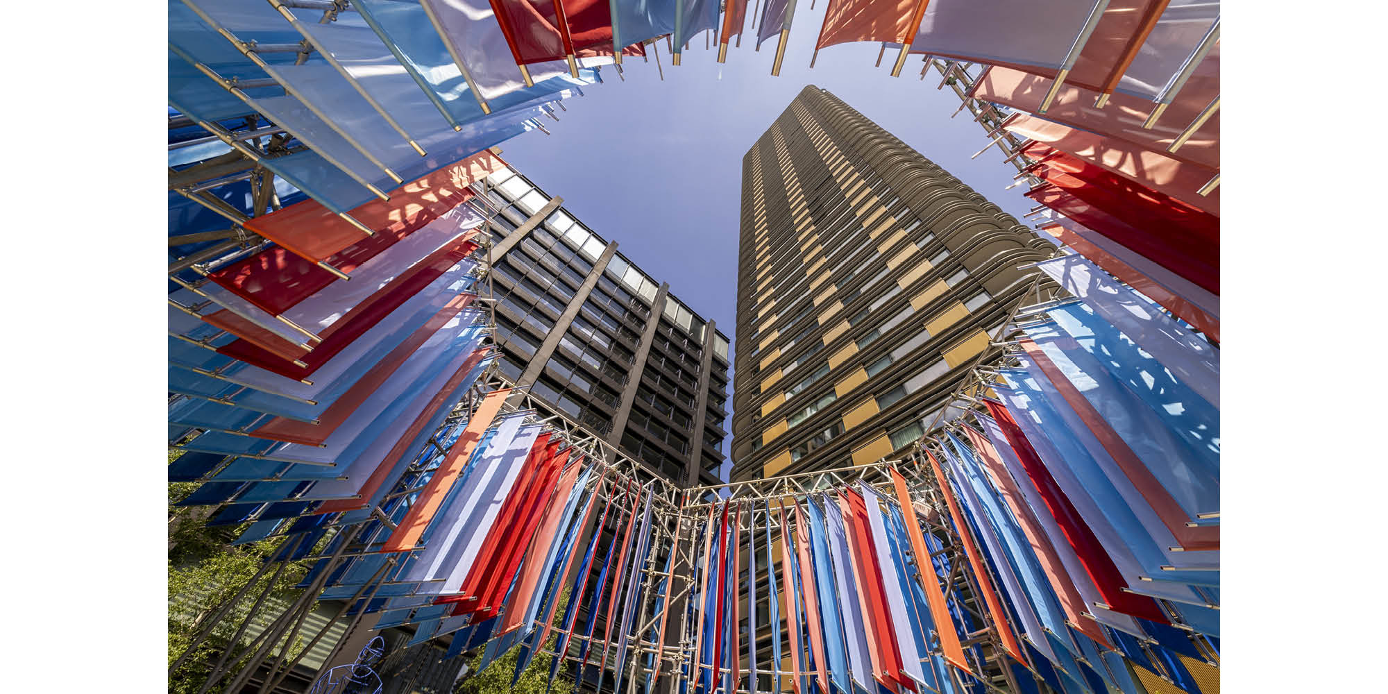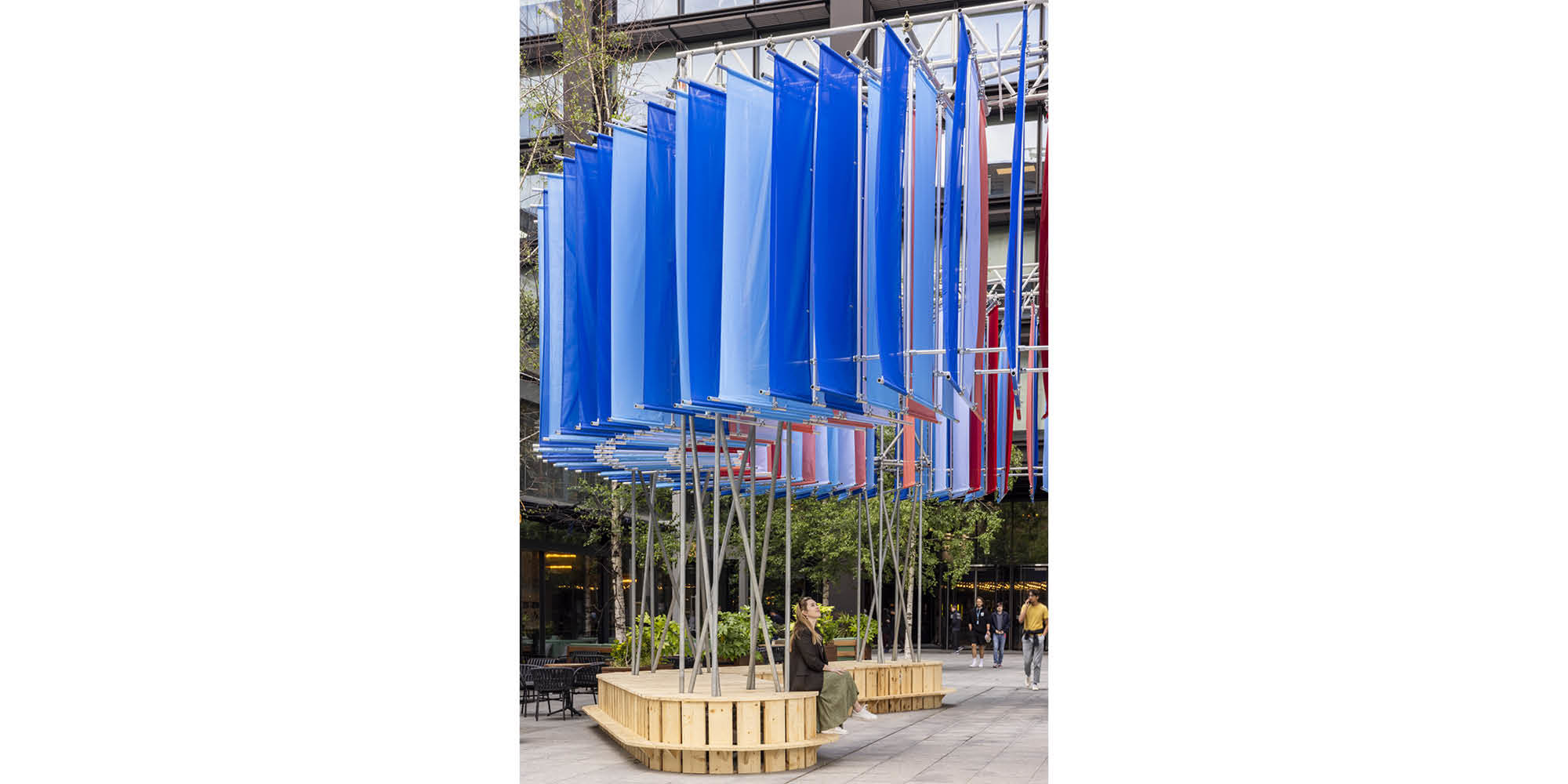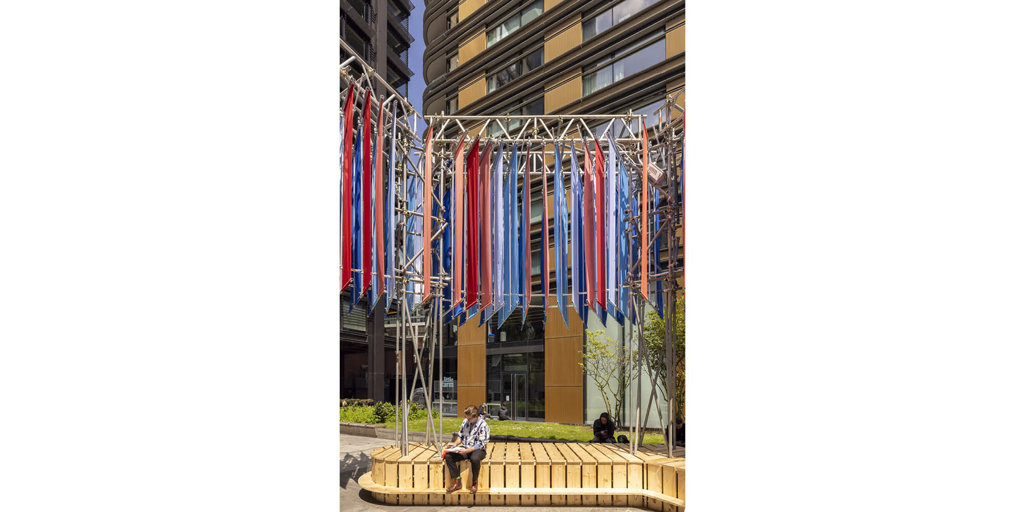 Created in collaboration with Brookfield Properties for the London Festival of Architecture (LFA), ‘Radial’ fosters community engagement while prioritising environmental consciousness. Constructed from readily available and reusable materials, the pavilion embodies principles of the circular economy.