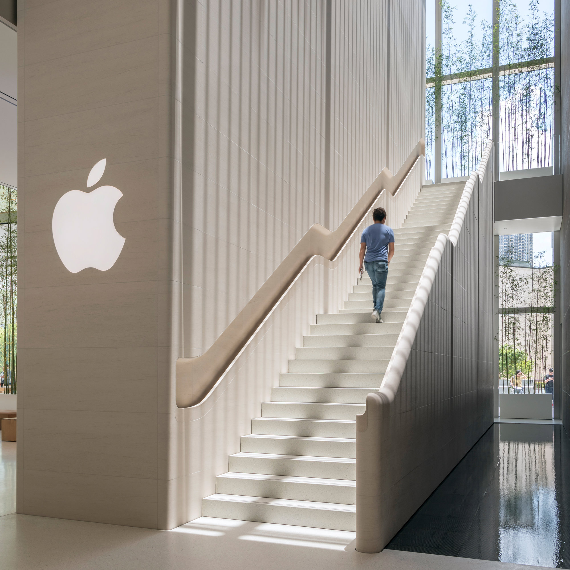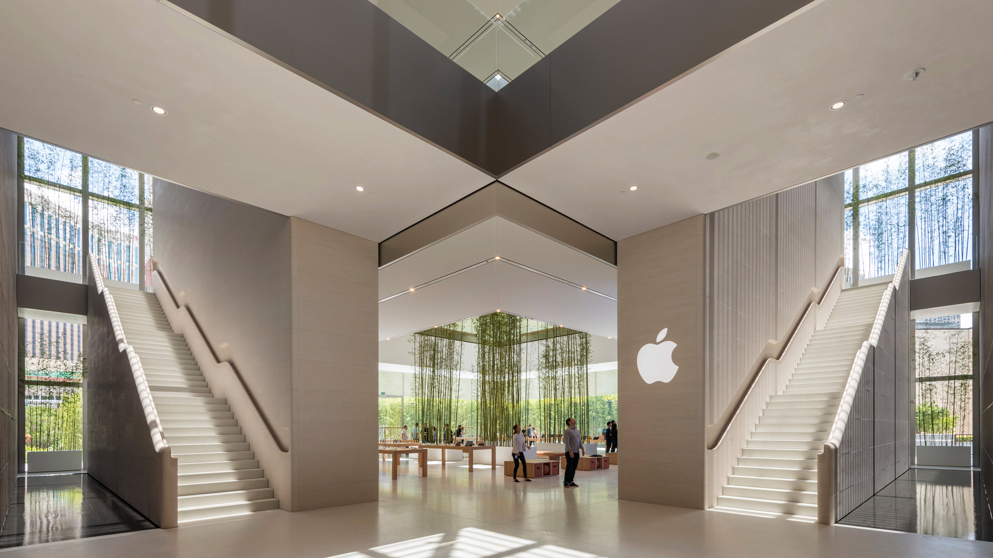 Apple Cotai Central seeks to create more meaningful spaces for the community and providing an alternative urban model for Cotai. Strategically located at the heart of this gaming and entertainment capital, the design makes a humble civic gesture with a large new event plaza in the foreground of the cube. Carved out of a densely planted bamboo forest, the plaza forms an oasis of tranquility, an urban room that draws people into the site, creating pedestrian connections between the surrounding buildings for the first time.
