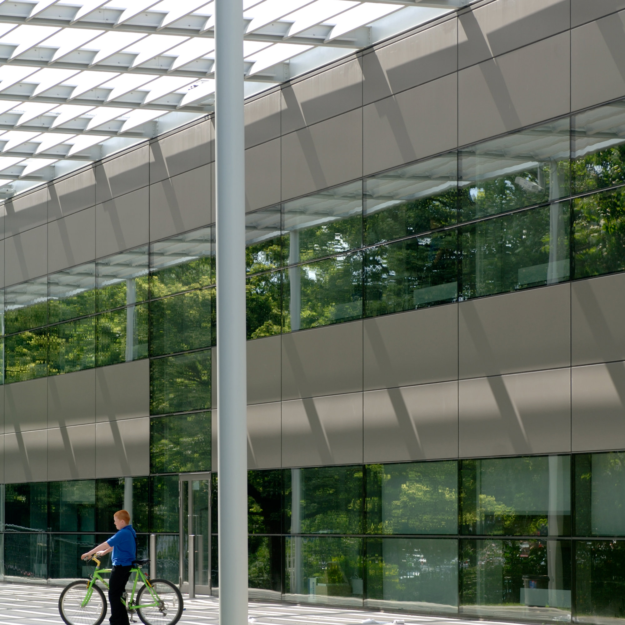 Djanogly City Academy replaces Forest School, which was closed in 2002, and Djanogly City Technology College, which had become over-subscribed. The Academy is based on two sites and the new building contains teaching spaces for more than 800 students aged between 11 and 14. Despite the Academy’s inner-city location and close proximity to a major road, the site is dominated by green space. The building is on the edge of Forest Recreation Ground, which once formed part of the ancient Sherwood Forest, and to the rear of the Academy, the former school was demolished to create playing fields. The Academy’s design exploits this natural setting, with full height glazing to draw the landscape into the building and wide terraces, sheltered by a canopy of brise soleil.