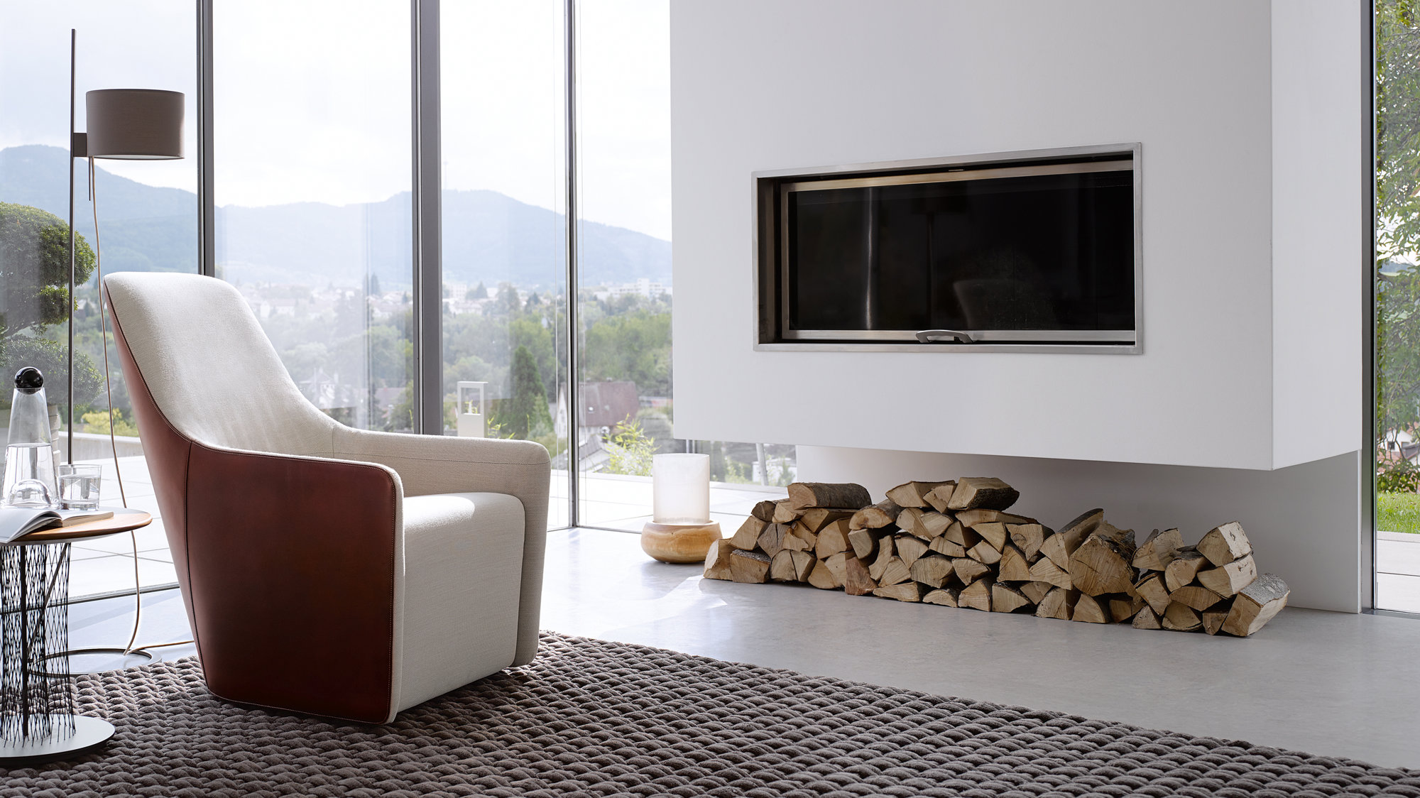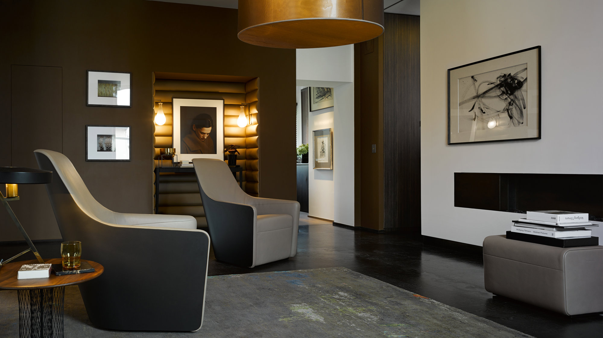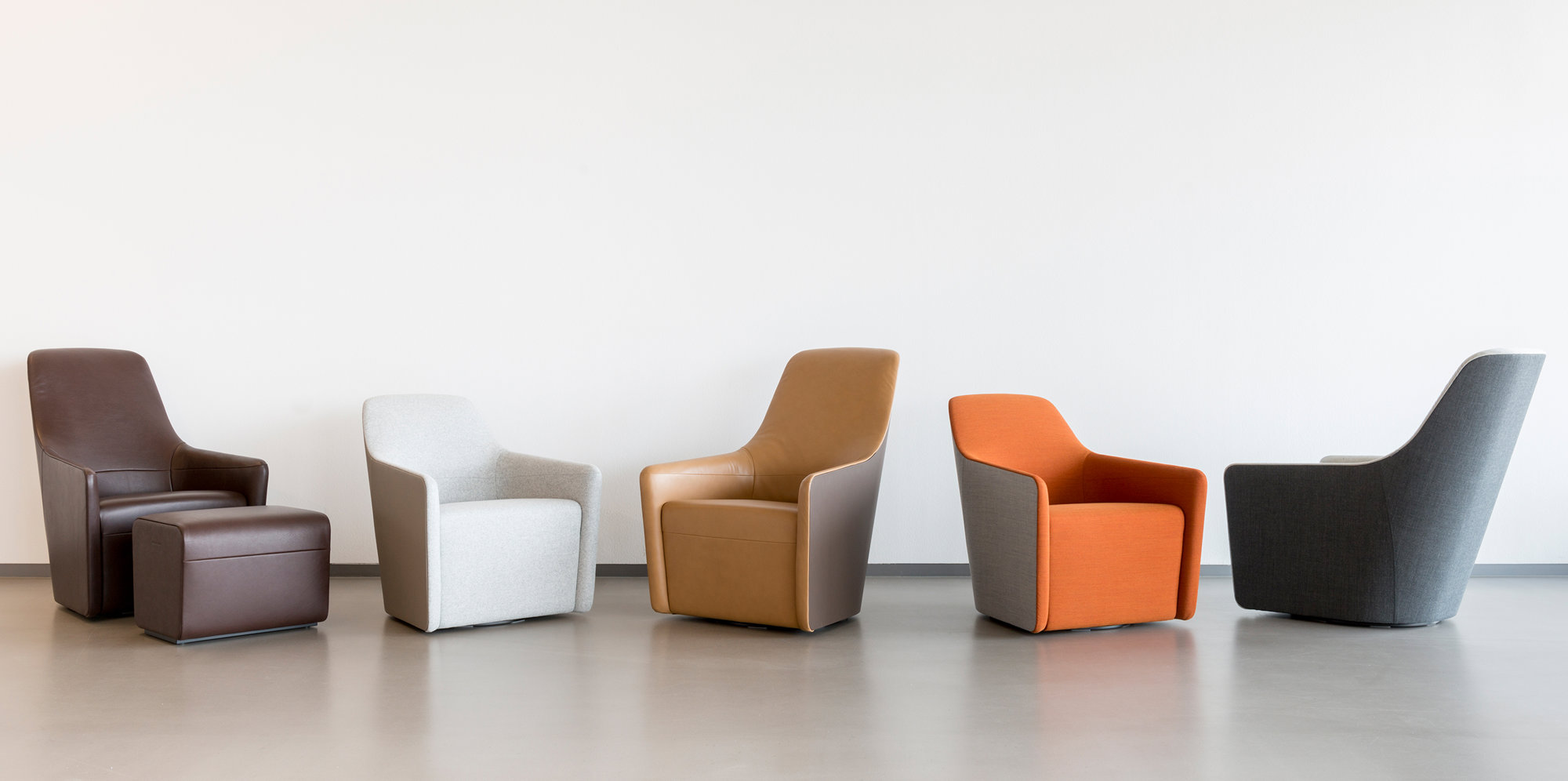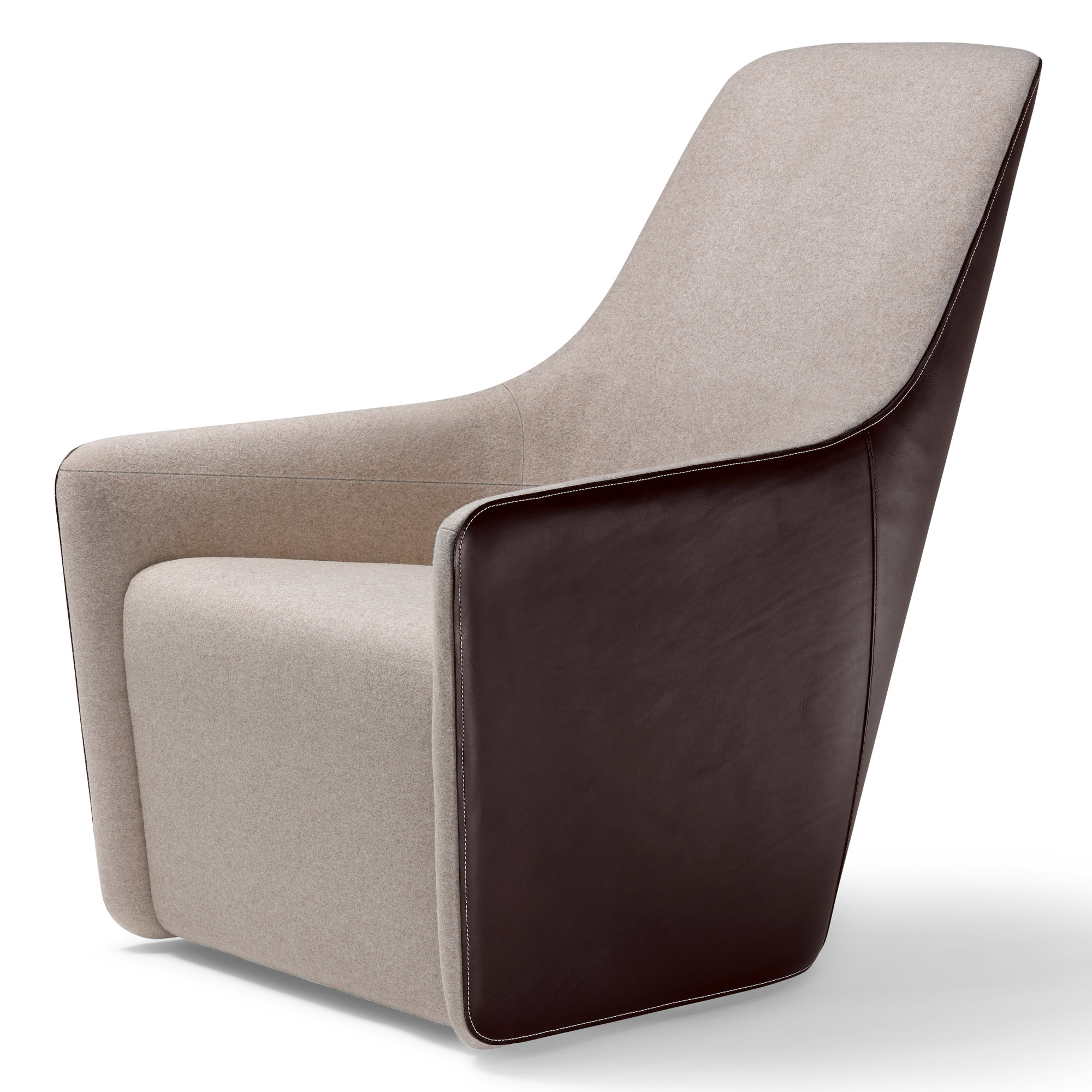 The armchair is based on three flat patterns, which are cut from leather and stitched together to create a single, flowing piece of furniture with the minimum amount of surfaces. Its form derives from ergonomic studies and a series of prototypes, and the refined linear profile is designed to visually reduce the chair’s bulk. Offering the texture and comfort of a traditional leather armchair, the outer shell is made of tough saddle leather, with a contrasting soft upholstered interior.