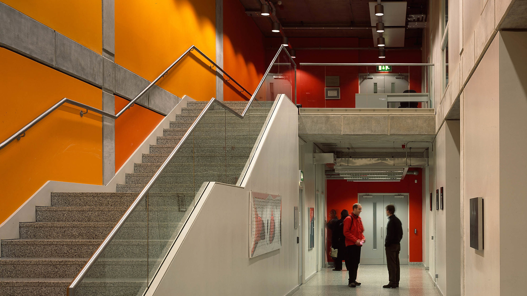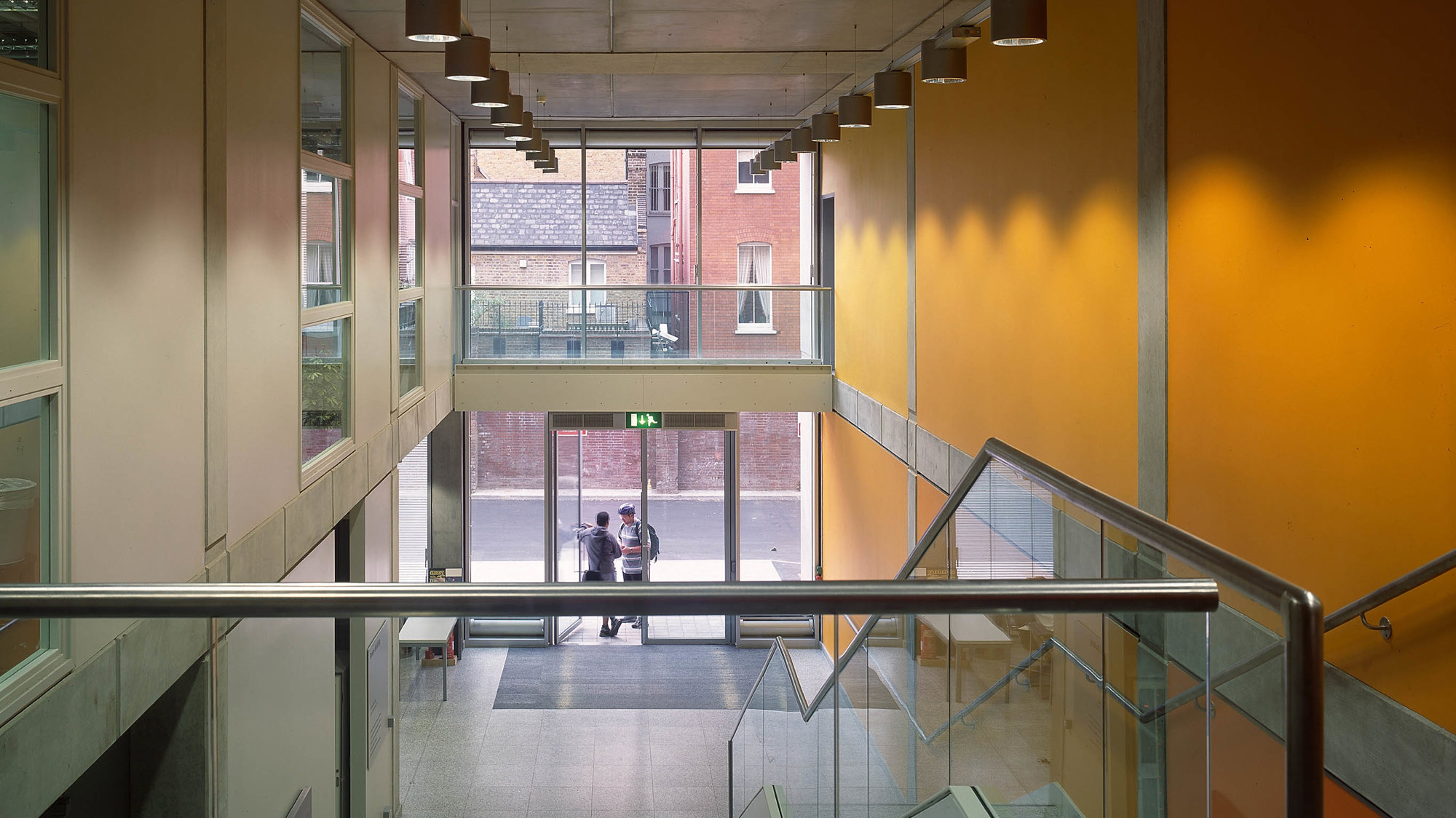 The brief called for a multi-disciplinary research facility to be located within Imperial College’s South Kensington Campus. The site is located on a narrow strip of land between the existing College Biochemistry Building to the north and the new Wellcome Wing extension of the Science Museum to the south. The building houses research and support laboratories with adjacent open plan offices, whilst the ground floor is occupied by a social area with seminar/meeting rooms which are shared by the different user groups.