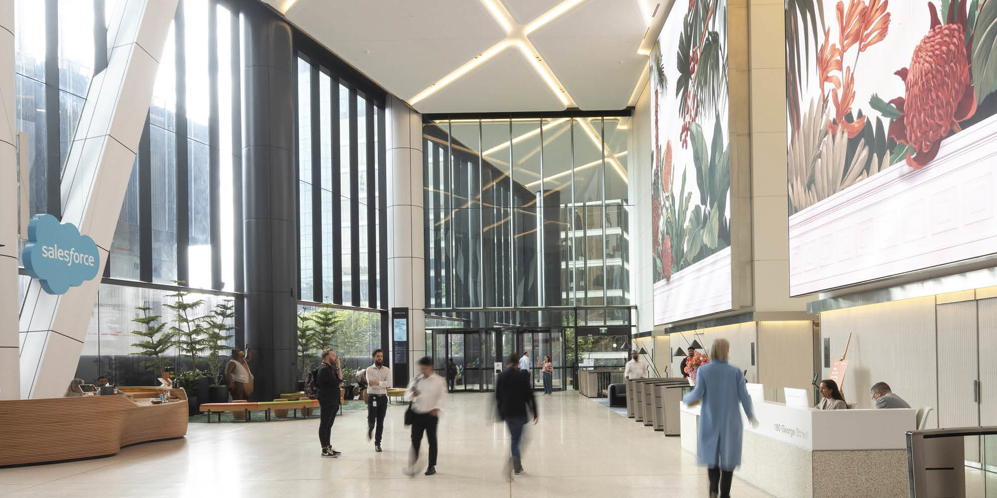The innovative workspaces at Salesforce Tower are flexibly designed to support new ways of working in the 21st century, suitable for a whole range of organisations, from new start-ups to large companies. The offset core and column free workspaces maximise views of Sydney Harbour, and create a workspace that optimises community, collaboration, wellbeing, and productivity for workers.