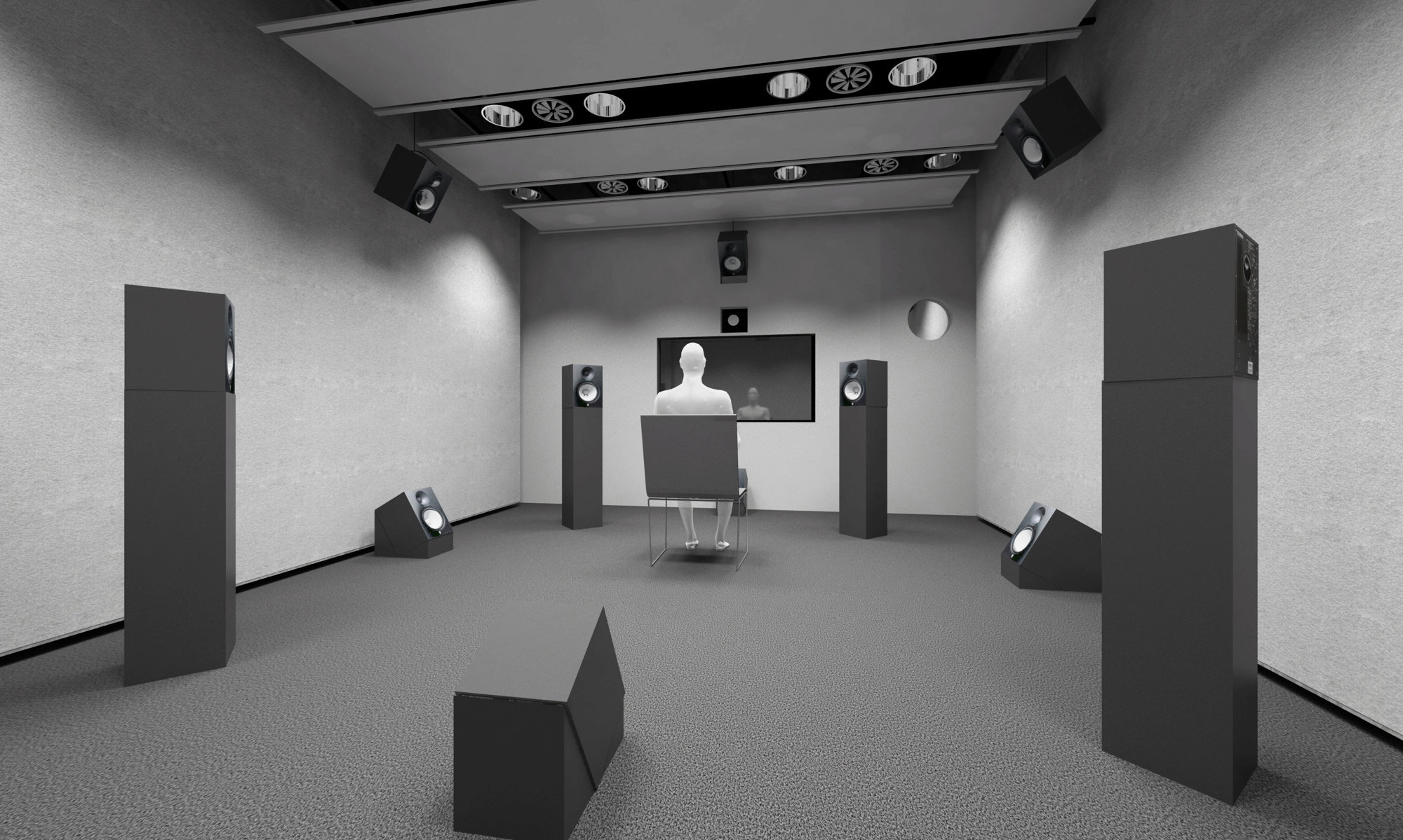 This digital realisation of sound – rather than taking us further from the material world – brings us closer to the spatial realities of acoustics and, by extension, of architecture. People hear in three dimensions, all the time; even when we are looking ahead, we are constantly receiving sounds from areas we can’t see – above, below, behind. Our brains instantaneously process this information and build a 3D image of the space around us. In other words: we can use the ear to see. Auralisation harnesses this immersive fact of acoustic design, and, in doing so, brings to the fore the spatial and material aspects of architecture. The visual representation of a building, usually expressed in sketches, plans, photographs, or films, risks flattening and muting it. Auralisation resists this flattening – or rather, perceives a space in ways that bypass or build beyond vision.