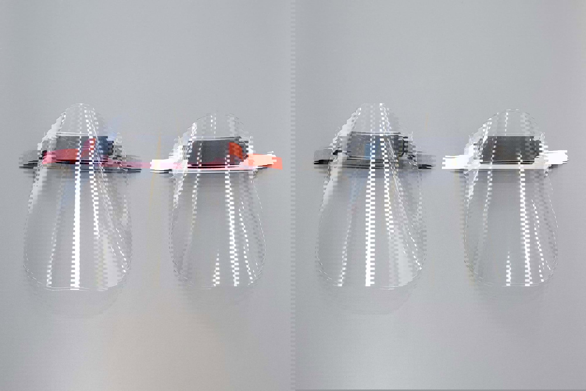 Our final visor design comprises a transparent plastic shield, polypropylene headband, adjustable silicone strap and optional foam insert for comfort. The design was released as an open asset on 6 April and received official CE certification on 13 May. © Aaron Hargreaves / Foster + Partners