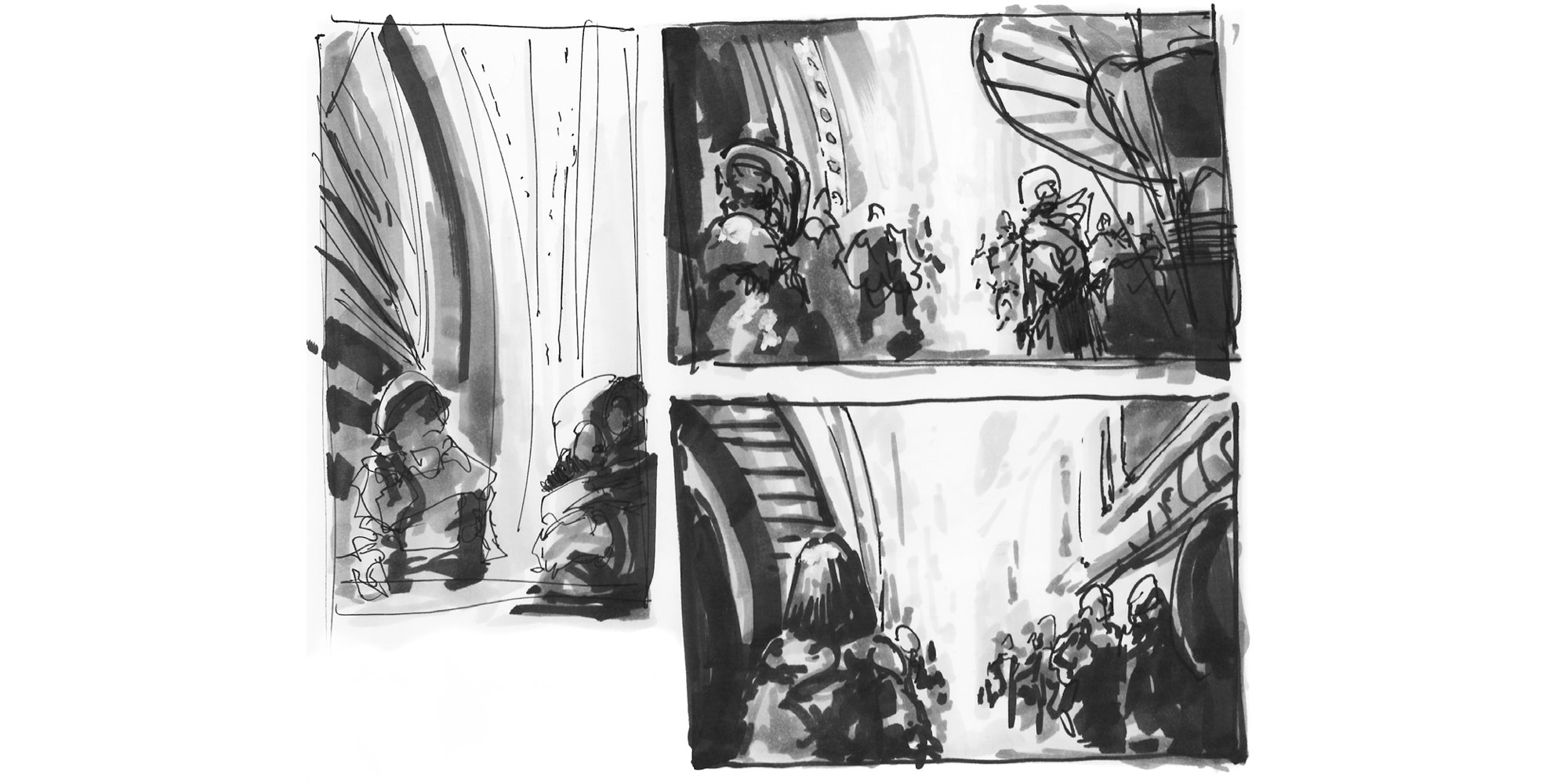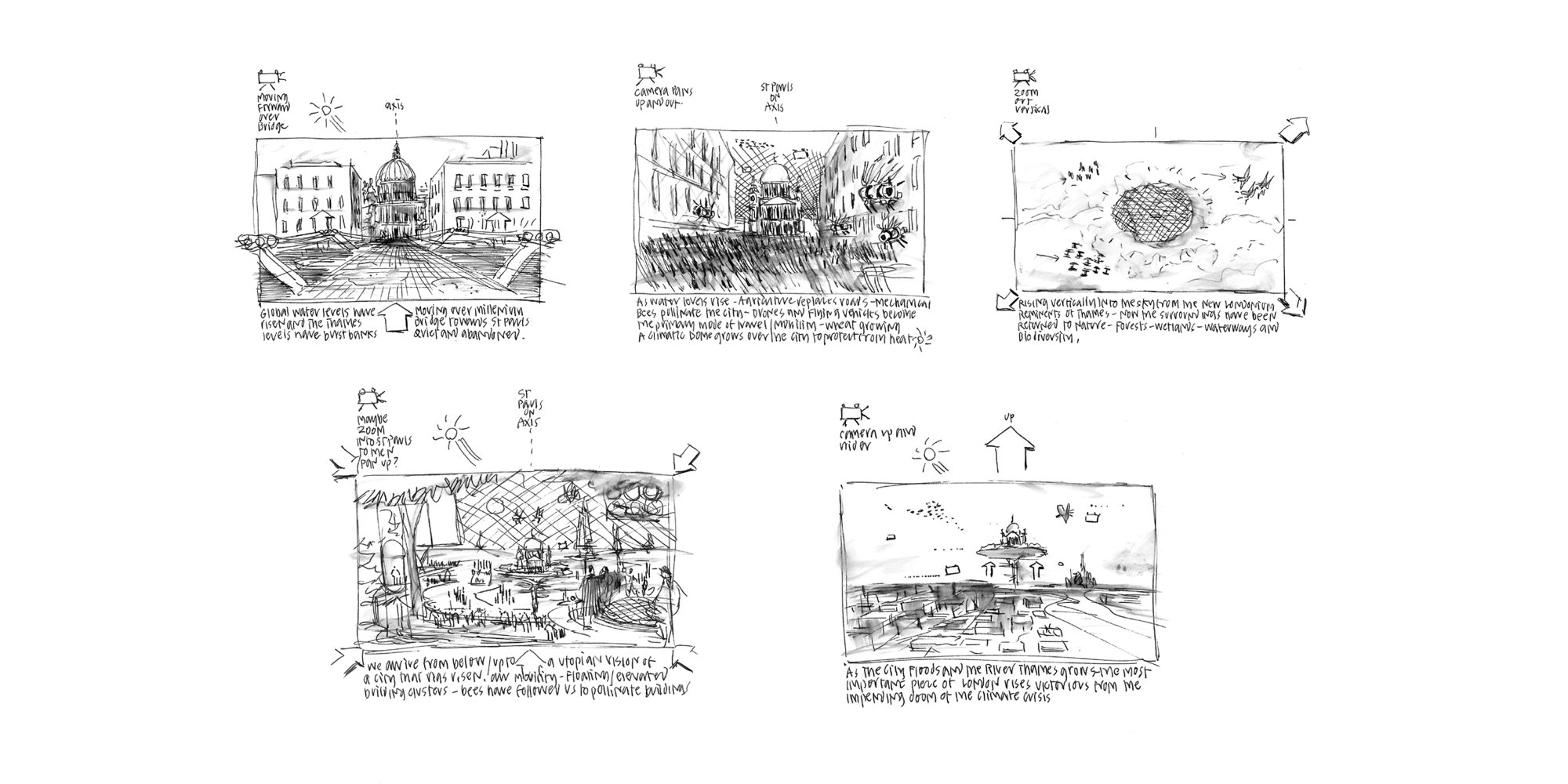 Storyboards are a way for the Design Communications team to navigate the spatial, visual, and narratological aspects of a design. © Foster + Partners