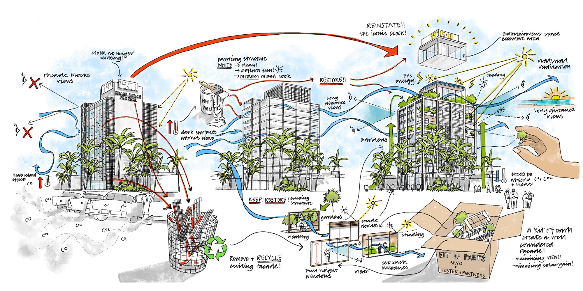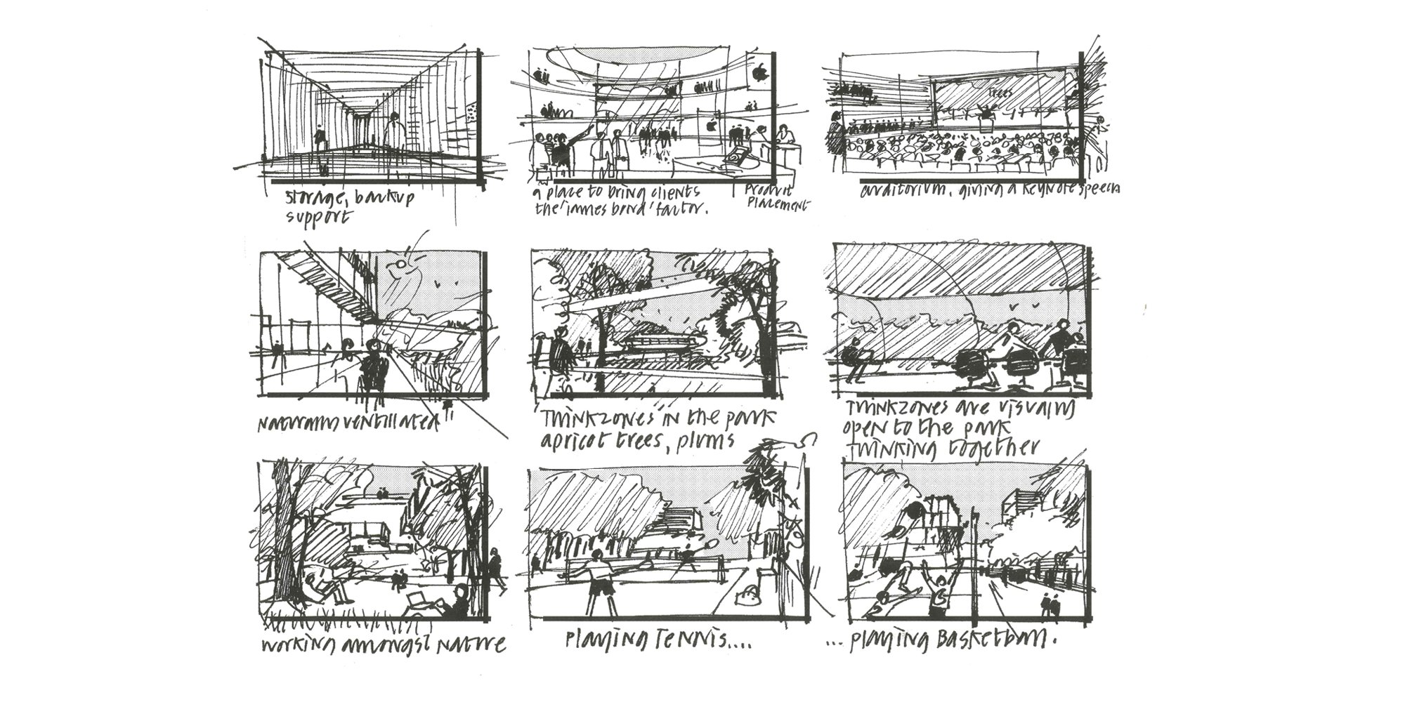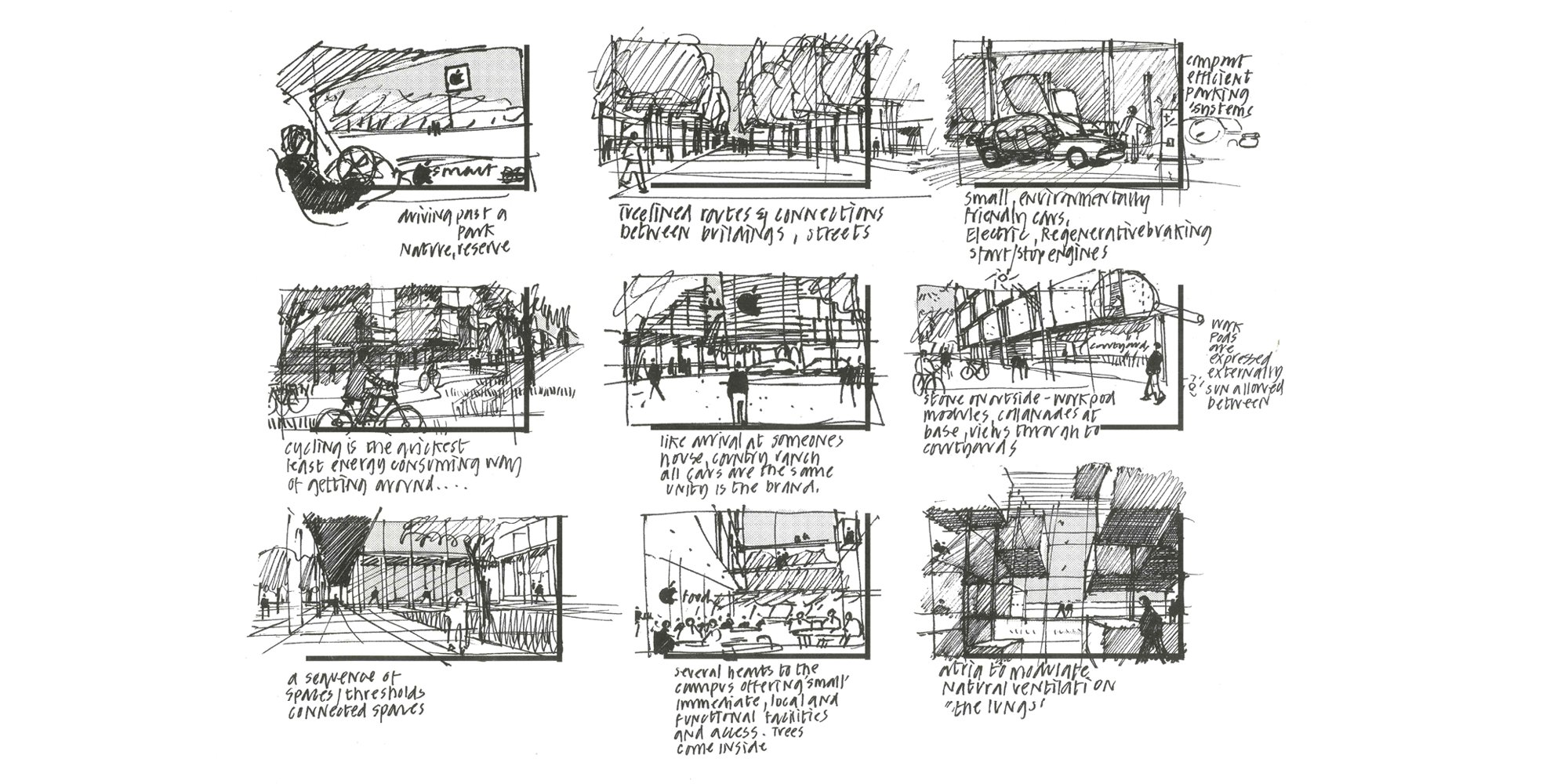 Examples of diagrammatic sketches created by the Design Communications team. © Foster + Partners