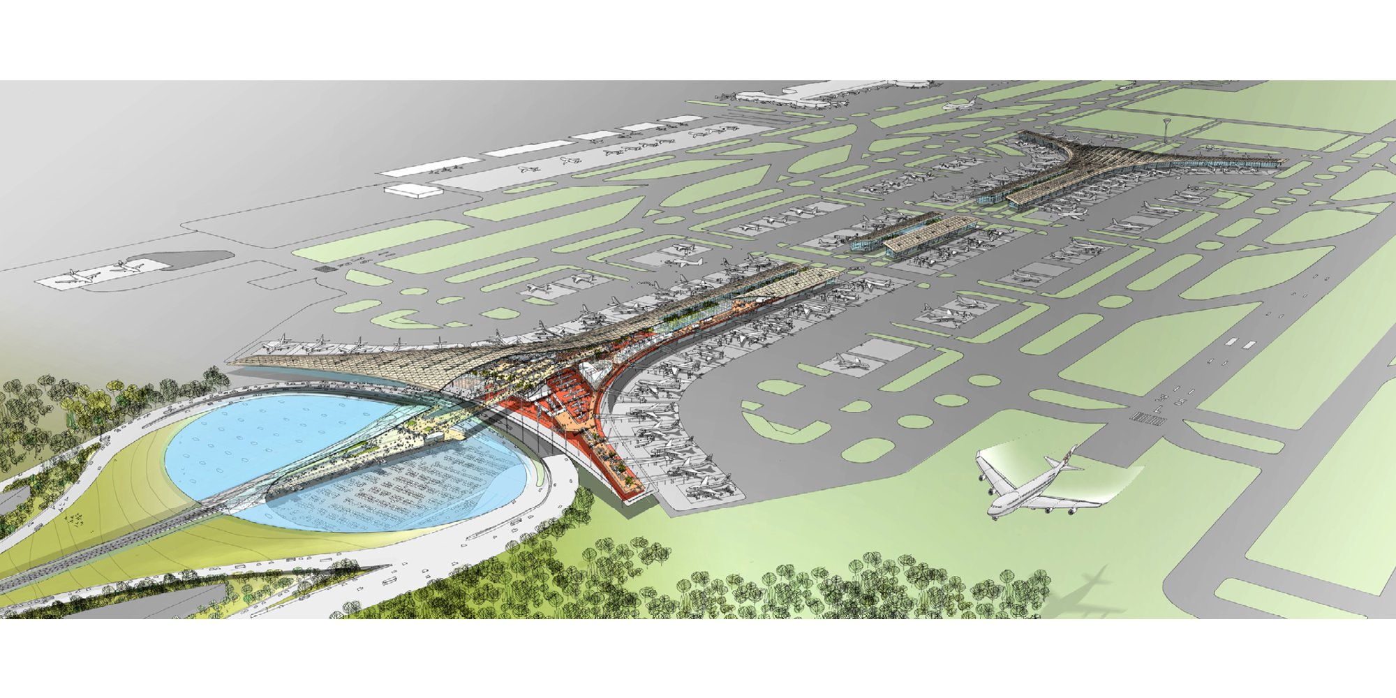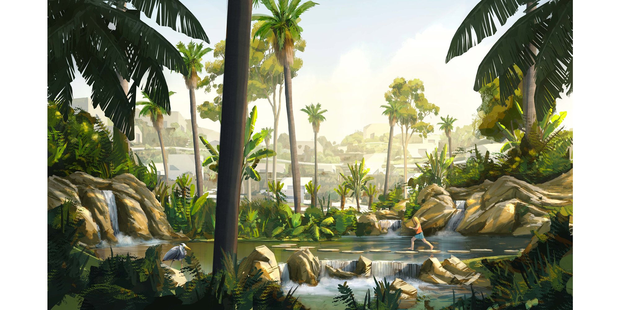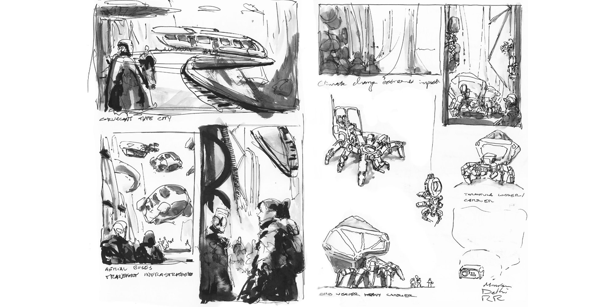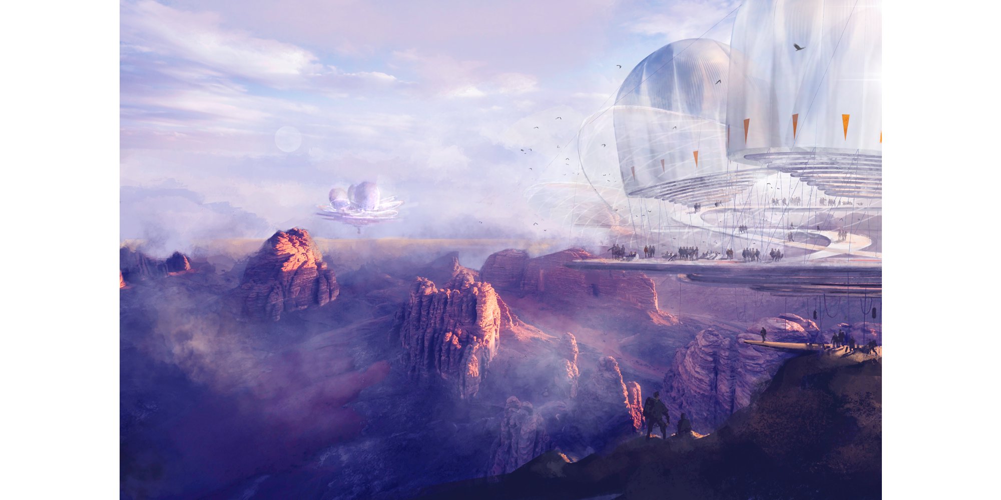 Examples of Concept Art created by Design Communications Artists, showcasing a wide range of techniques and styles to communicate a sense of mood, story and design within the early stages of projects. © Foster + Partners