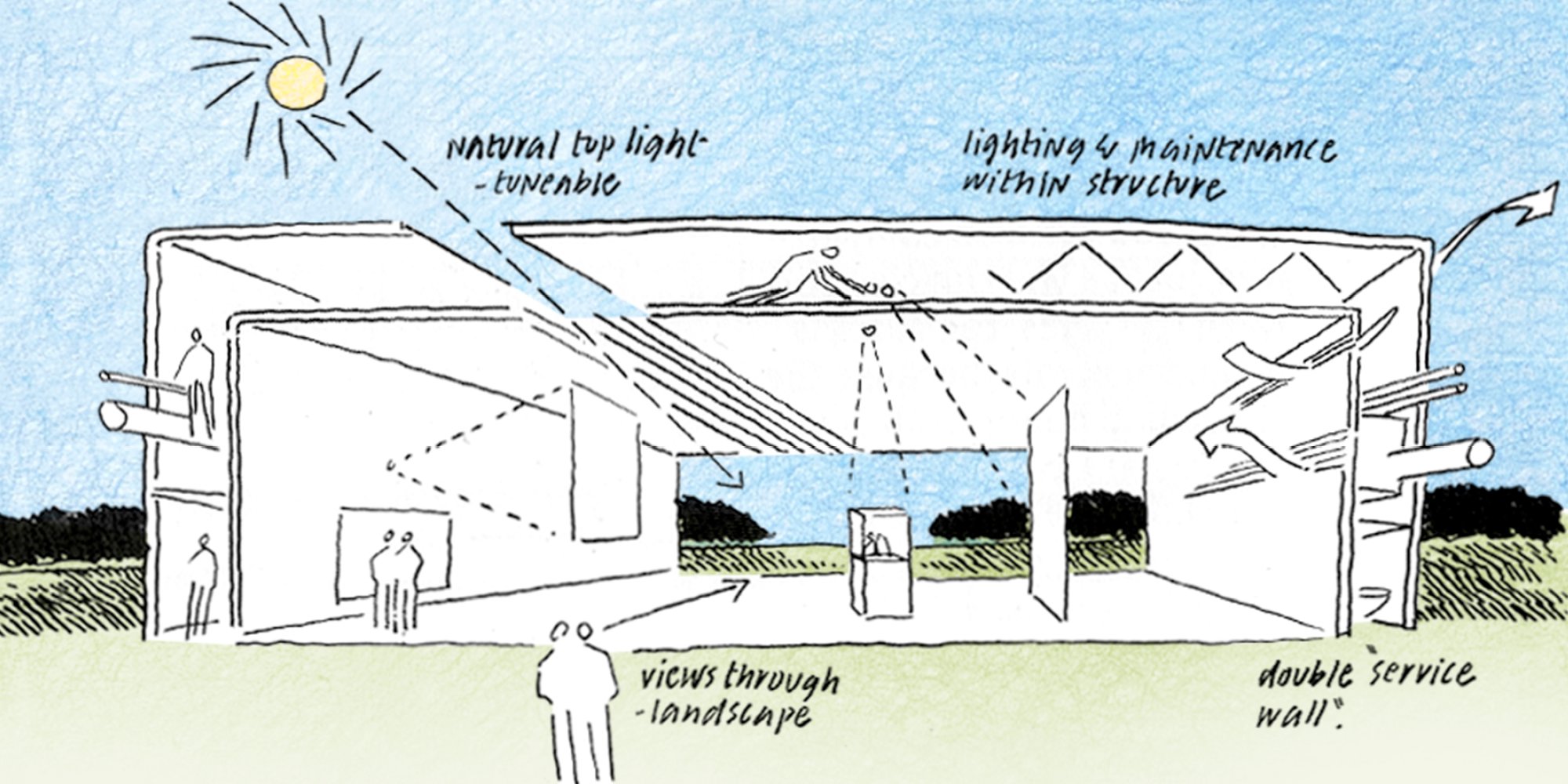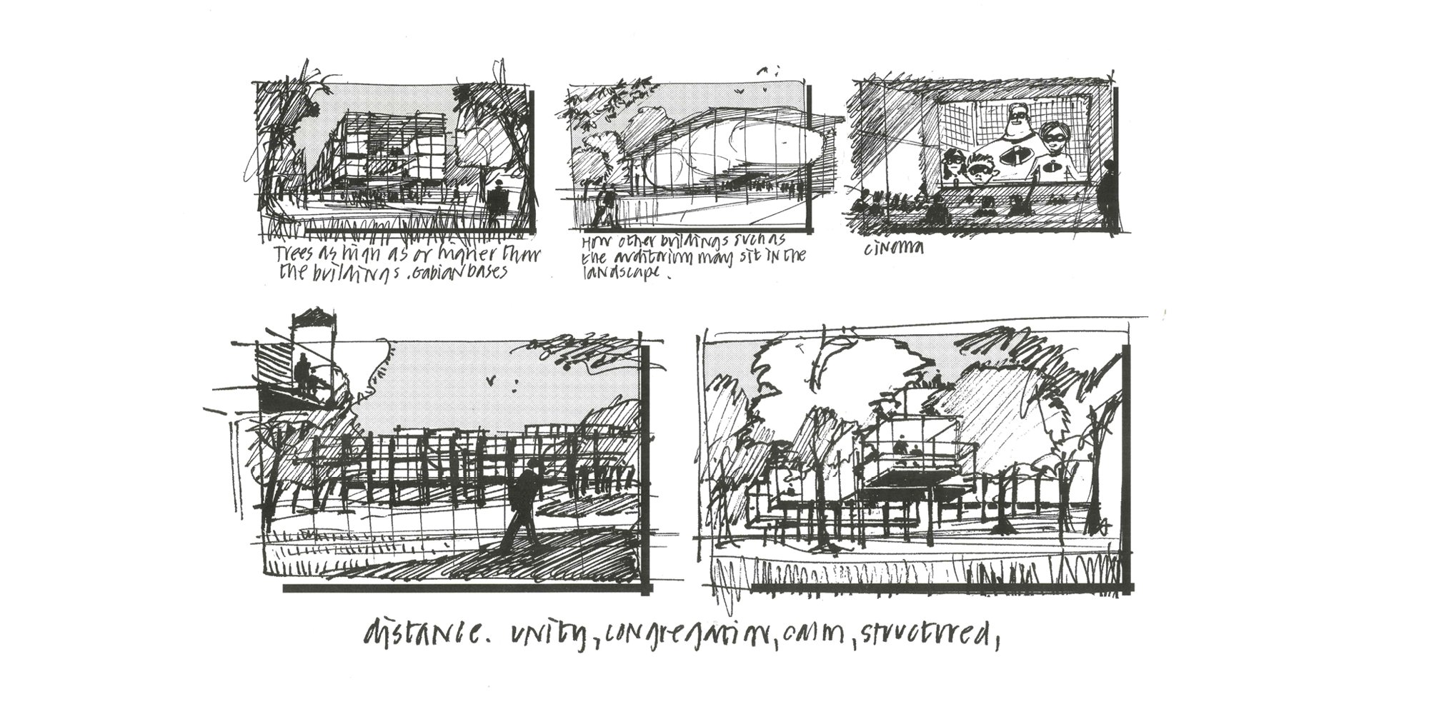 Sketches by Norman Foster. Sainsbury Centre for Visual Arts, Norwich, UK (1978). © Norman Foster Foundation