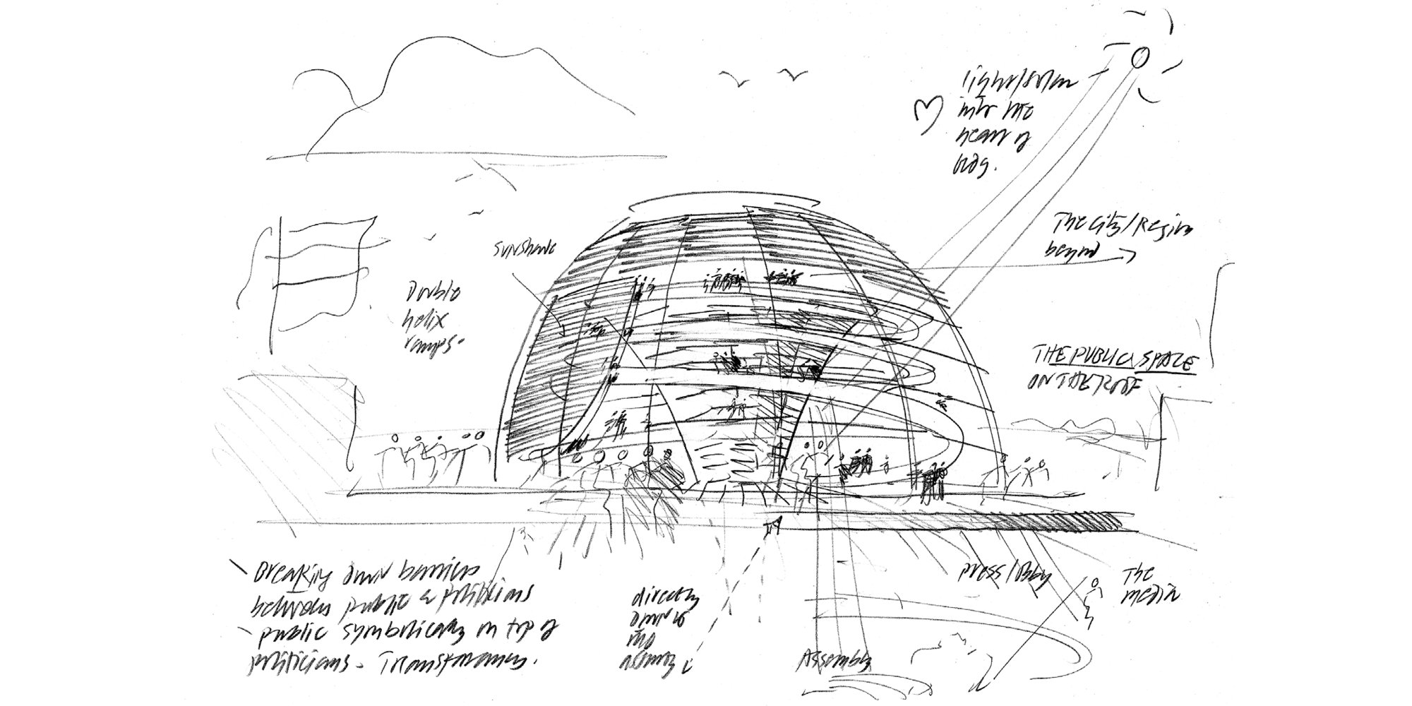 Sketches by Norman Foster. Reichstag, New Parliament, Berlin, Germany (1999). © Norman Foster Foundation