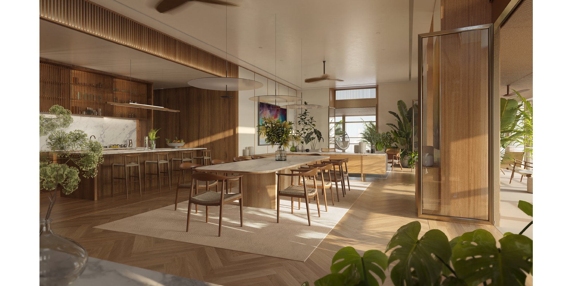 Still images can offer a supreme amount of detail and the opportunity to articulate a single space. Moving art's approach is different. ‘Spaces transform over time,’ Matthew reminds, ‘and moving art is a way to represent that.’ The sequencing and zooming 'in' and 'out' of spaces find ways to navigate a design story, with the focus being more on effect and user experience. ‘There’s also an auditory component that can be introduced,’ Matthew adds. ‘An analogue sketch can’t do that.’