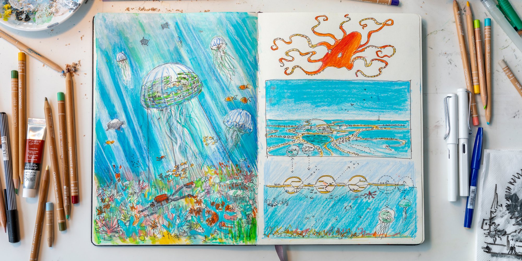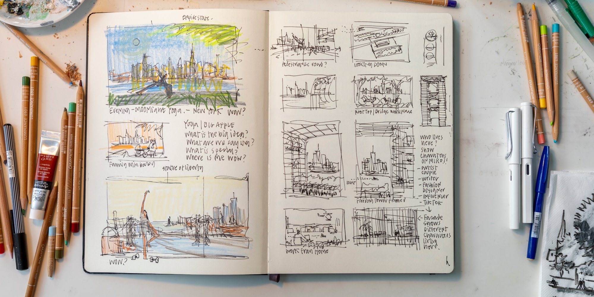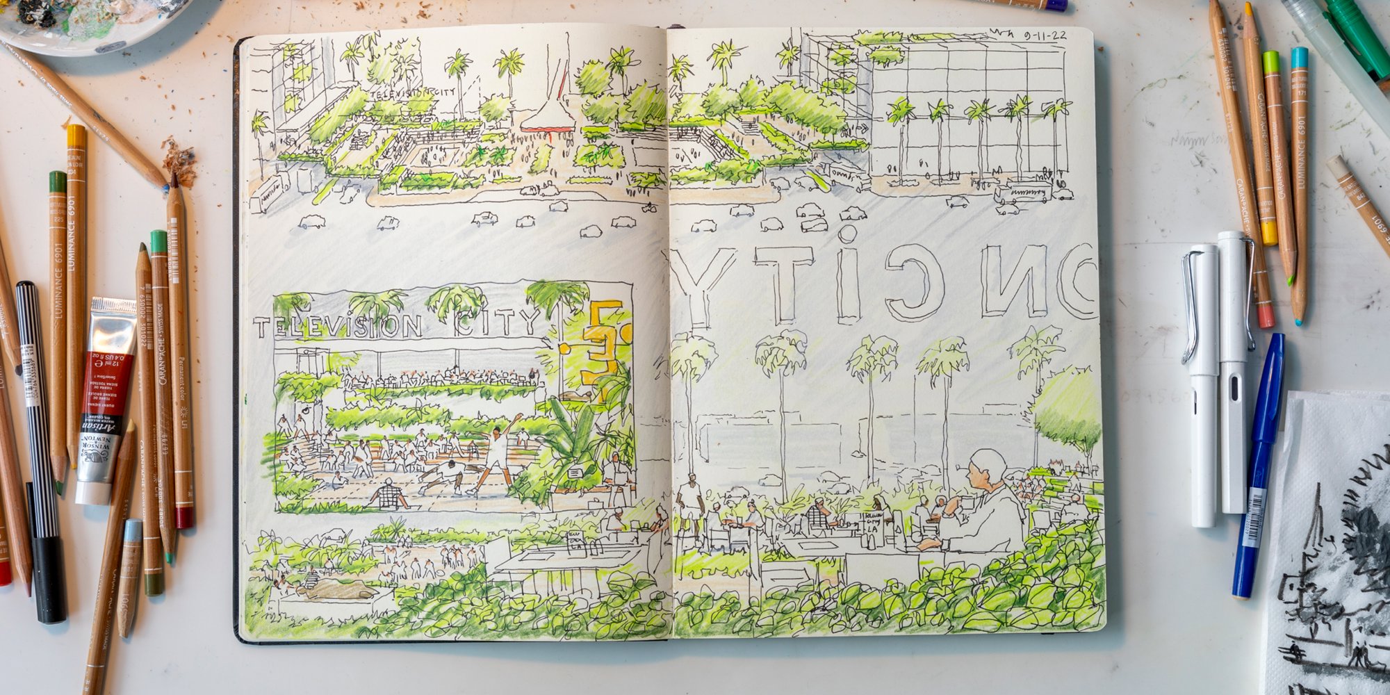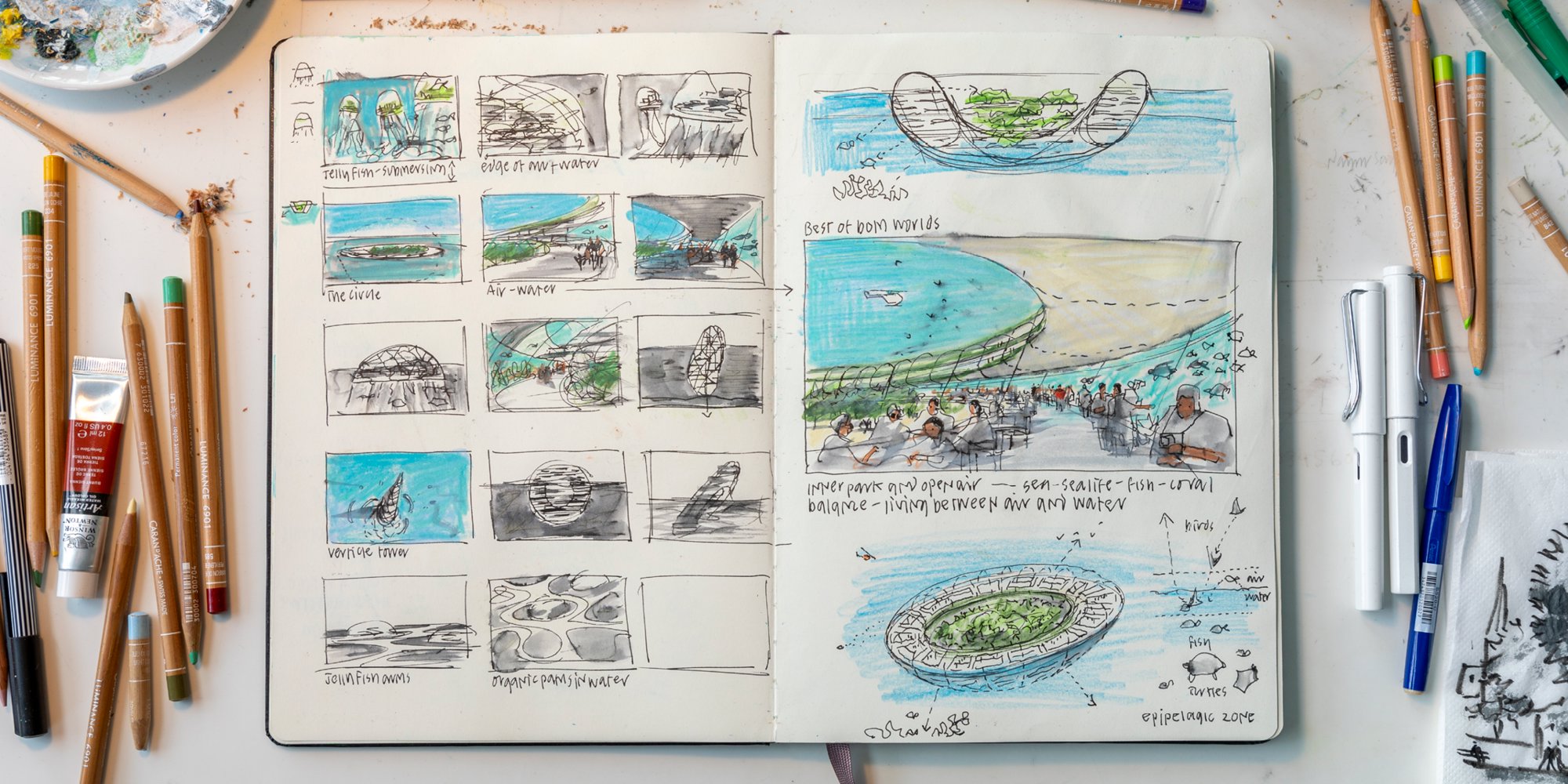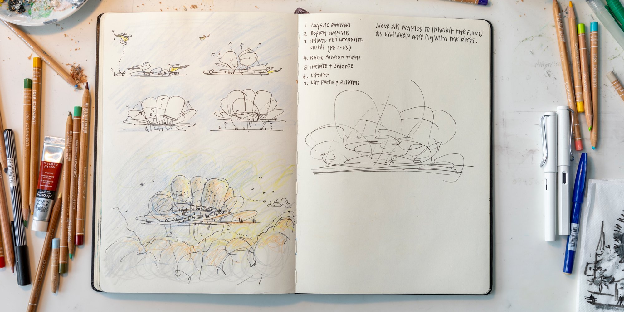 Architecture and drawing go hand-in-hand – a phrase that underlines the manual history of both the building and the sketch. As technologies and mediums for drawing expanded, so have the definition and use of the architectural drawing. Members of the Design Communications team at Foster + Partners reflect on their place in the practice of drawing in the Foster + Partners studio, and its ability to question what might be possible for a design.