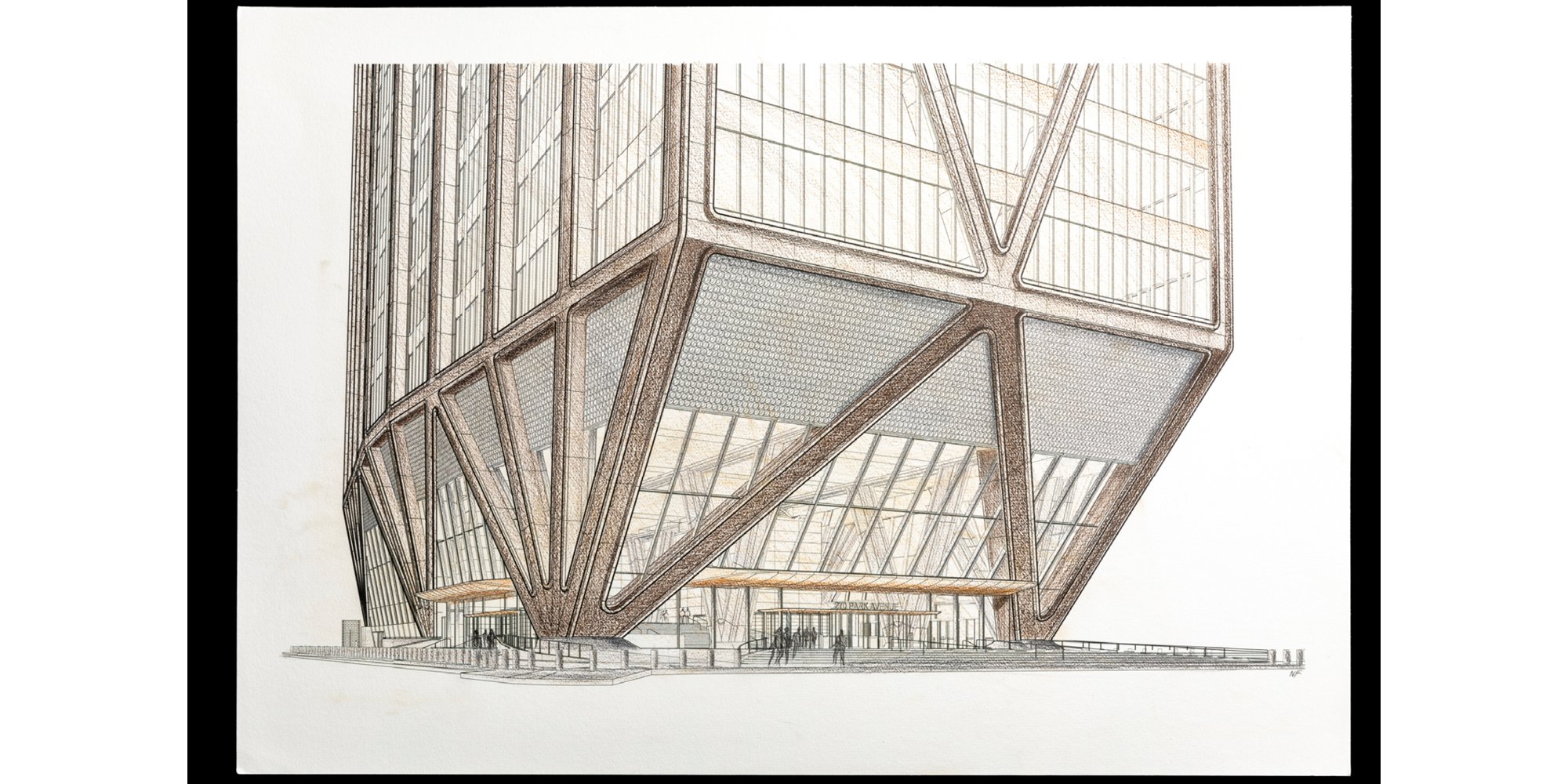 Haward is perhaps the best recognised of the architects inculcated by the practice who were also supremely talented artists and illustrators. Others, like the Czech-born architect Jan Kaplicky, would also go on to establish successful practices – Future Systems in Kaplicky’s case – and contribute to the rich legacy of drawing that the studio’s current practitioners are able to draw from. Foster Associates also sought out and commissioned works from specialist architectural illustrators, like Helmut Jacoby, who worked alongside the practice’s design teams to offer visual representations of designs. Archives of all of these drawings act as time capsules for those design processes, and, to this day, can communicate projects that were never built. Architects throughout the studio are continuing this legacy, from Senior Partners free-hand sketching construction details to new architects extolling innovative techniques in the studio’s annual Graduate Show.
