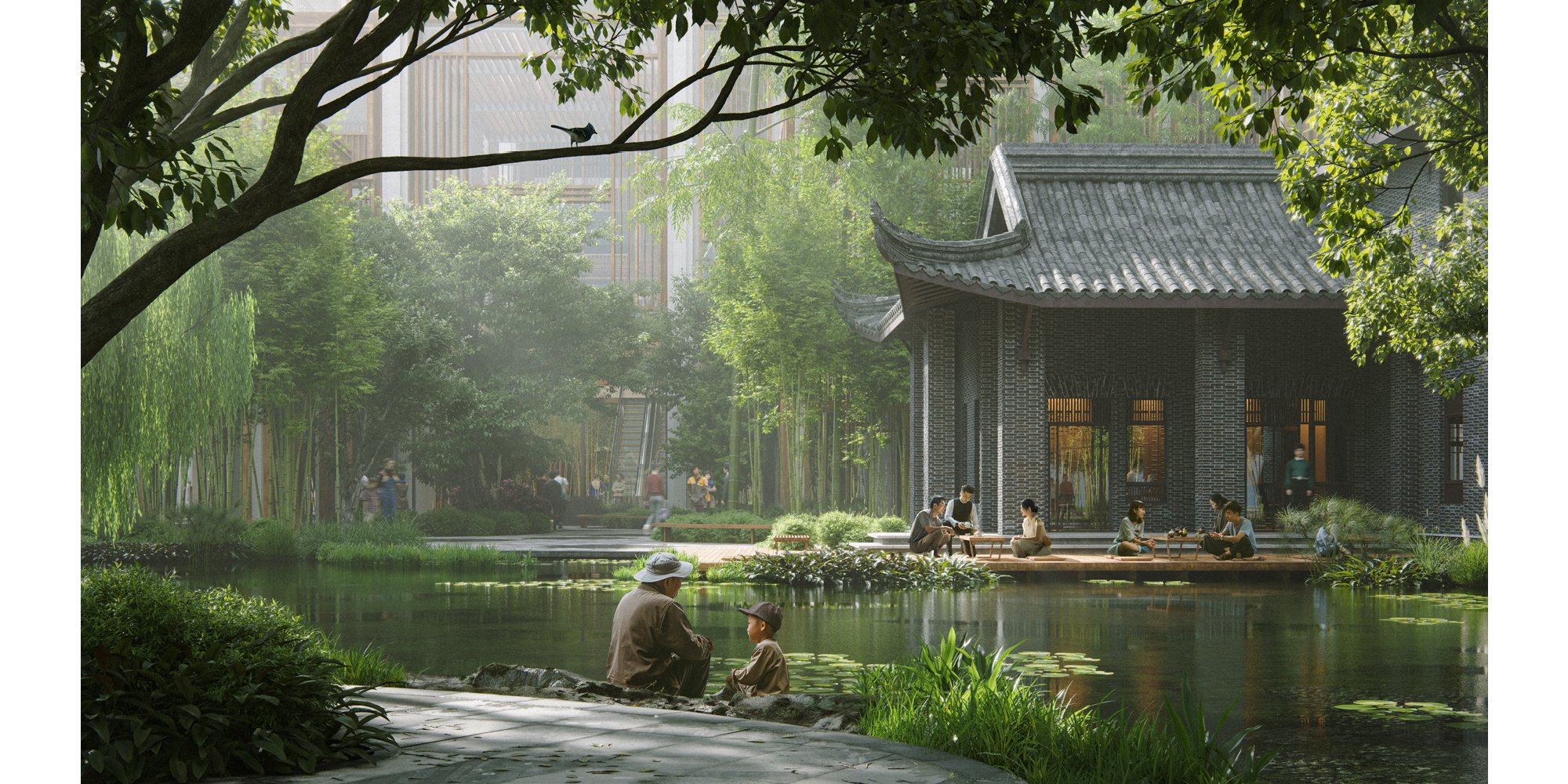 The discourse surrounding AI often dwells on its unregulated, obfuscating use. However, the technology does offer practical and responsible applications for Design Communications. AI can quickly generate details for three-dimensional photoreal artworks and offer a variety of composition options that the team can then compare. Rather than replacing the artist, the team consider AI to be another medium of drawing. ‘It is never an end-point, but a tool,’ Victoria reminds. An AI image generator cannot explain why one image will work ‘better’ as a visual composition, let alone as an architectural proposition. Nor can it think from scratch, or read between the (construction) lines, of what an architect might be thinking or what a client might want. The team’s drawings are always related to the design at hand, always sensitive to the reality of the project.