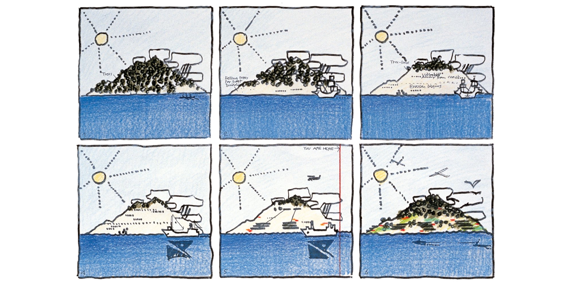 As the practice grew throughout the decades its pool of accomplished architects grew. One such architect, an influential partner in the formative years of Foster Associates, was Birkin Haward. Haward was a key member of the design team of some the studio’s most notable early projects, from the Hackney Special Care Unit (London, UK, 1972) to the Gomera Regional Planning Study (Canary Islands, Spain, 1975). In support of his talents as an architect was Haward’s now well-recognised skill as an artist and architectural illustrator – one able to switch from narrative story boarding (as at Gomera) to impressively legible technical drawings (like those produced for the IBM Pilot Head Office at Cosham, UK, 1971). Establishing his own architectural practice with Joanna van Heyningen in 1983, Haward – now a professional artist – has retained the virtuosity for communication and the visual arts that the practice was so fortunate to benefit from in those first decades.