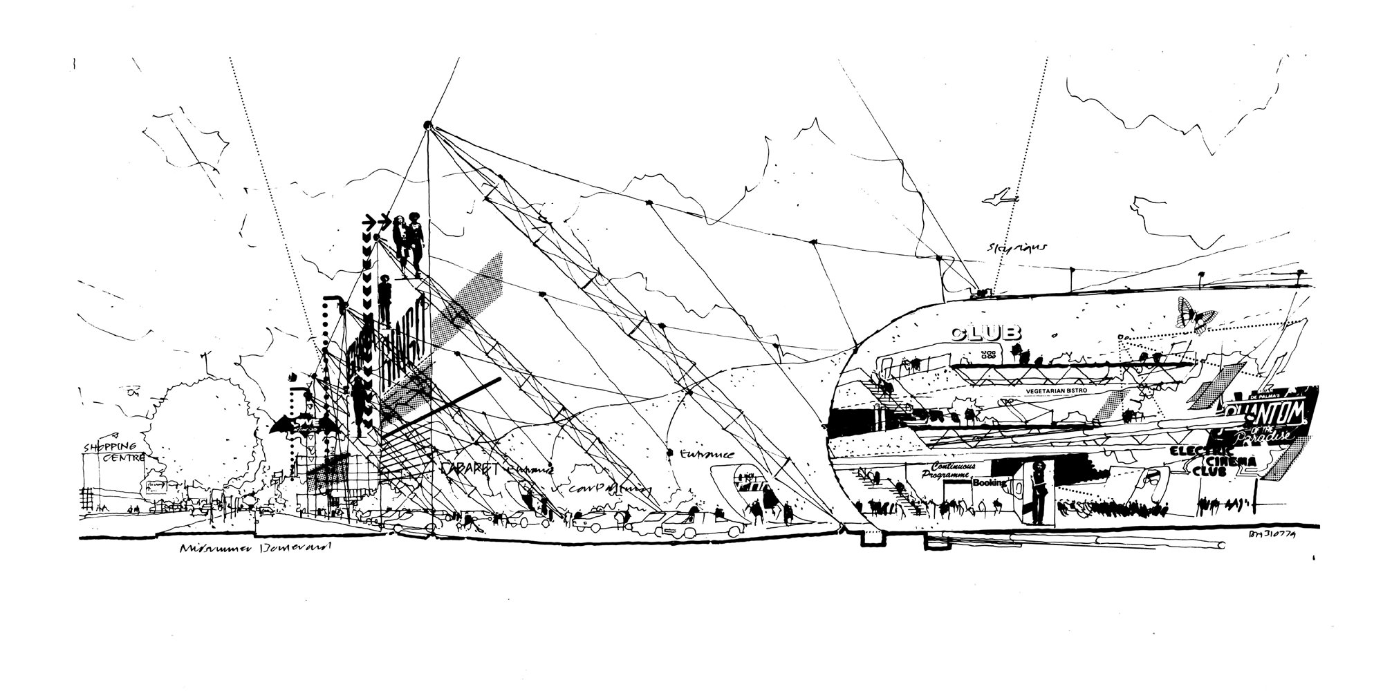 Drawing by Birkin Haward for the unrealised Granada Entertainment Centre. © Birkin Haward / Foster + Partners