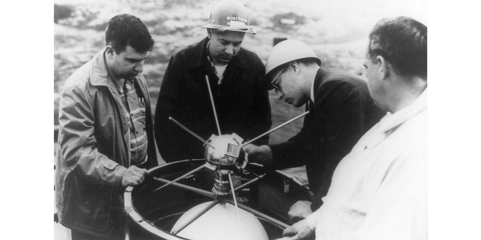The Vanguard TV3 satellite in 1958. Managed by the US Naval Research Laboratory, it carried two radio transmitters, one battery powered and one solar powered, to obtain data on the Earth's shape and gravitational field. It’s launch was a failure and contributed to the establishment of a single civilian space agency, the National Aeronautics and Space Administration (NASA), in 1958.
