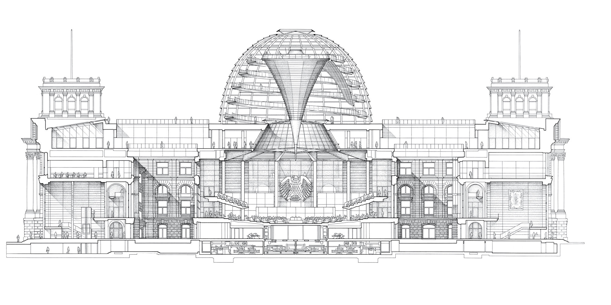 The Reichstag was not only a monumental restoration and renovation task; it was a civic project that needed to represent a reunified Germany in the wake of a painful twentieth century. More so, as the new house for the Bundestag (German parliament), the building needed to look ahead to the twenty-first century, embracing its future technologies and philosophy of democratic leadership. Its transformation is rooted in four major issues: a belief in the significance of the Bundestag as one of the world’s great demographic forums; a determination to make the process of government more accessible; an understanding of history as a force which shapes buildings as well as the life of nations; and a passionate commitment to the low-energy, environment-friendly agenda which is fundamental to the architecture of the future.