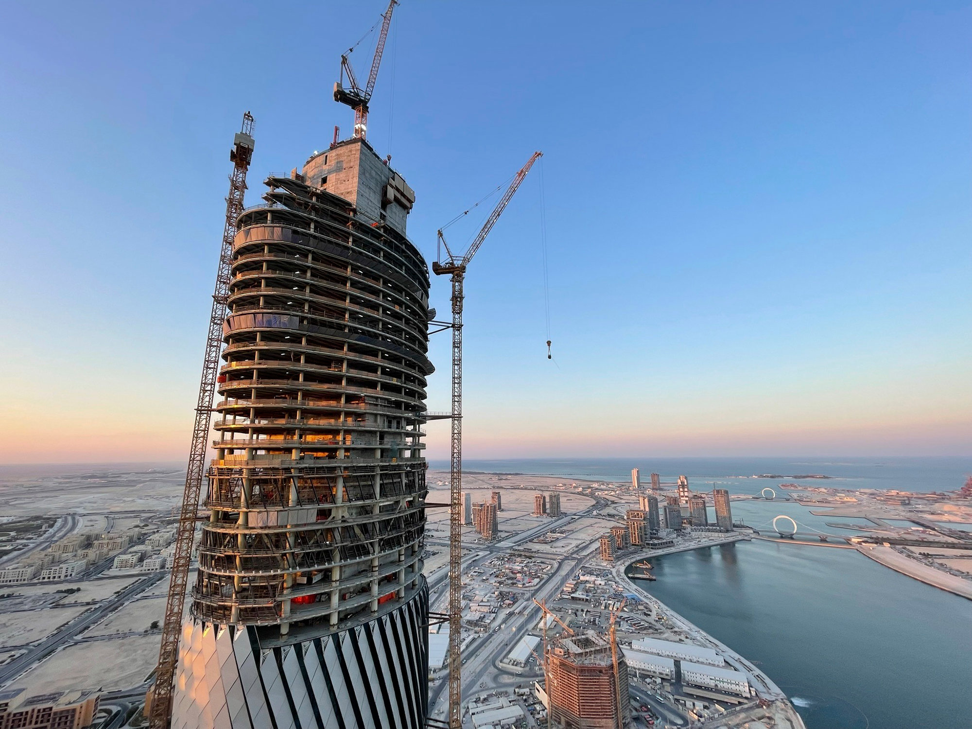 Lusail Towers: The most common way to resist the lateral loads in modern buildings is by using the building’s core, the part of the building that contains the vertical circulation – the stairs and lifts required to provide access, as well as possibly the spaces needed to house the services. Above a certain height, anywhere from 150 to 250 metres depending on the building and the applied loads, the core gradually ceases to be the most efficient method of providing lateral stability on its own.