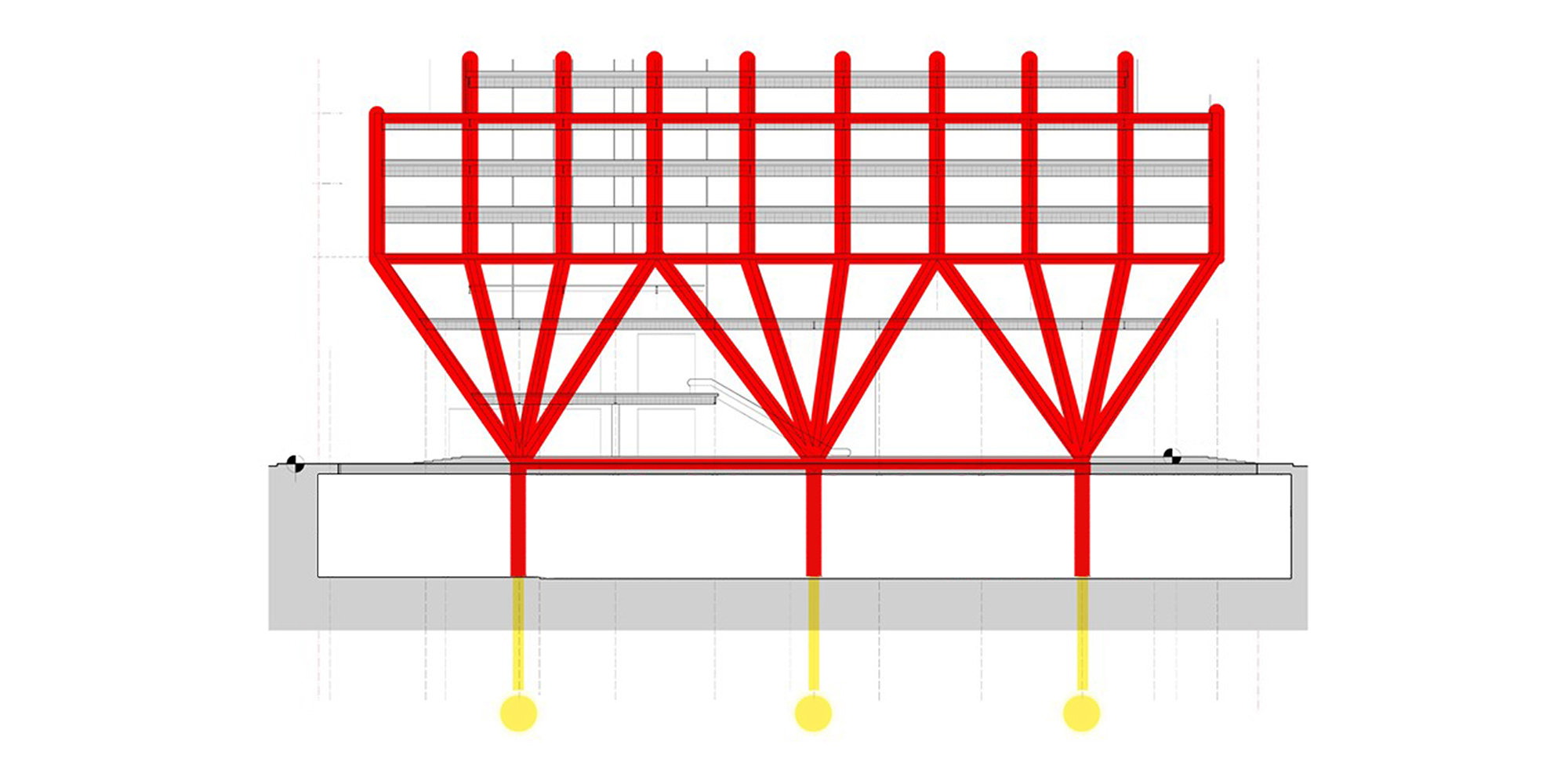 Structural section through the ground level of 270 Park Avenue, showing the distinctive fan columns.