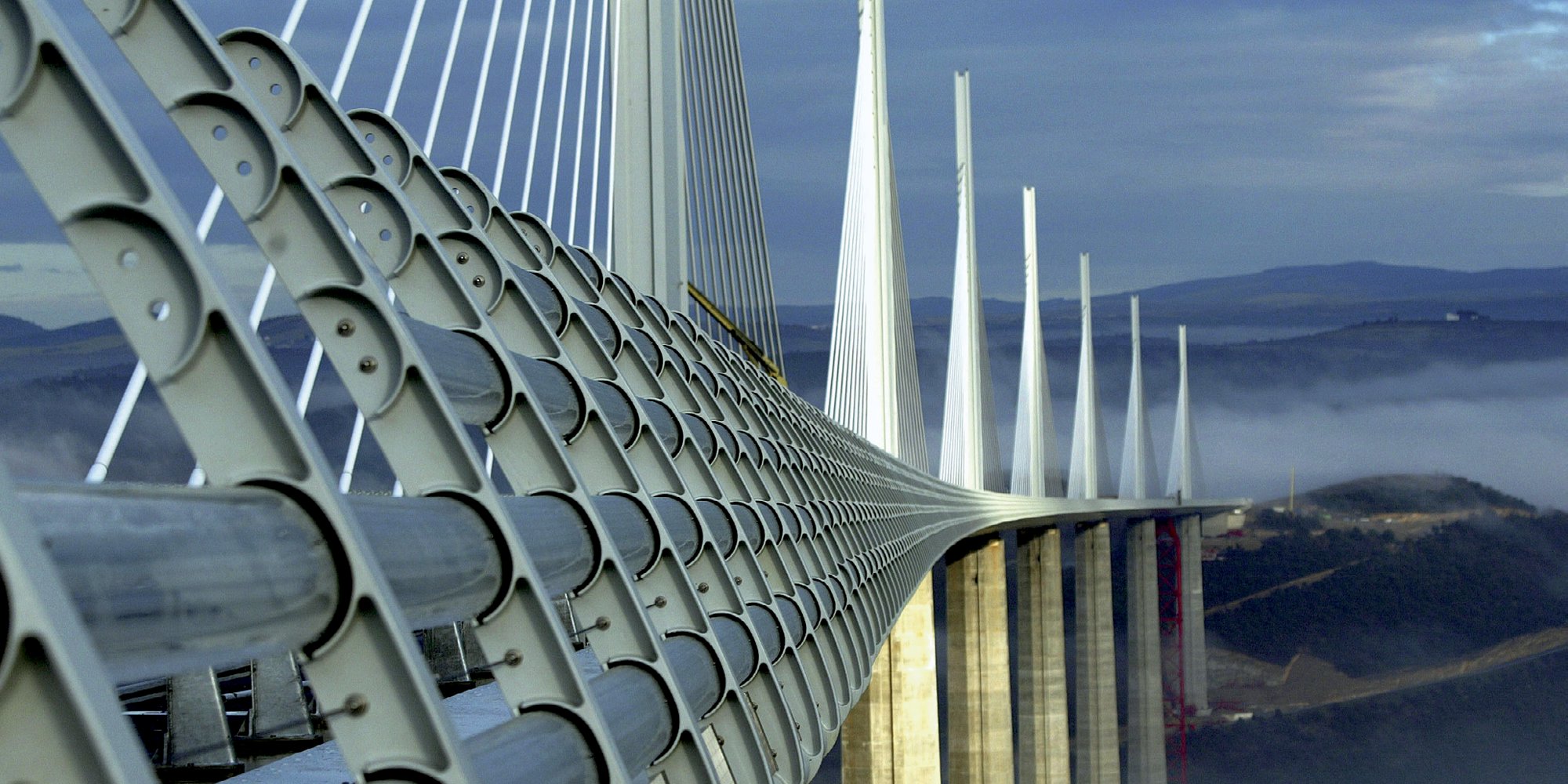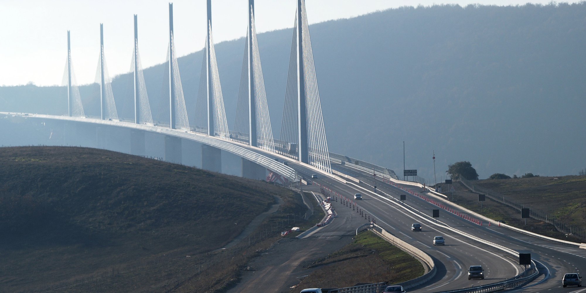 In December 2004, the Millau Viaduct first opened to vehicles. Located in southern France, the bridge completed a hitherto missing link in the A75 autoroute from Clermont-Ferrand to Béziers across the Massif Central. The A75 now provides a direct, high-speed route from Paris to the Mediterranean coast and on to Barcelona.