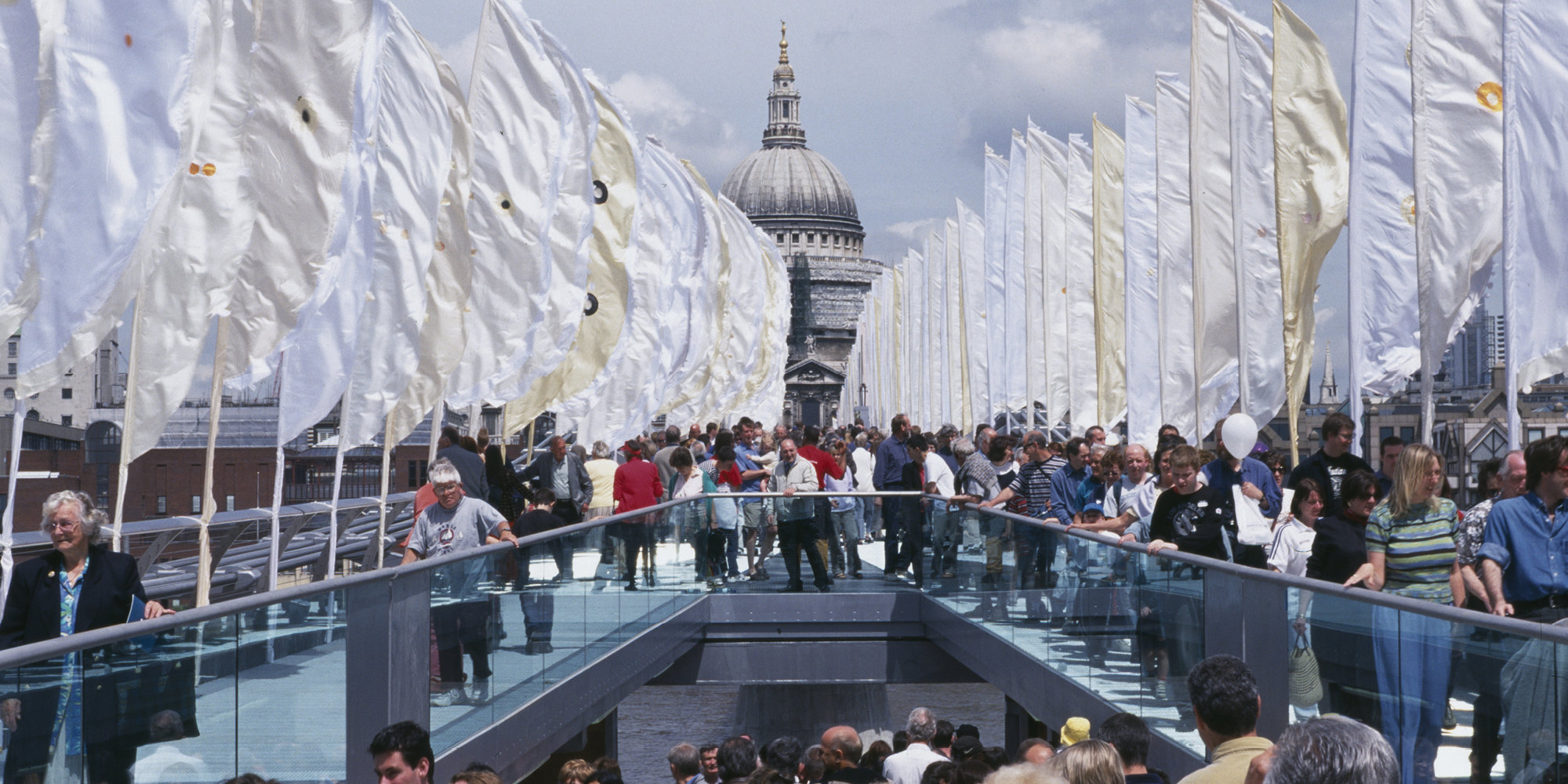 Developed with sculptor Anthony Caro and engineers Arup, the Millennium Bridge has created new routes into Southwark and encouraged new life on the embankment alongside St Paul's. The bridge opened in June 2000 – and an astonishing 100,000 people crossed it during the first weekend.