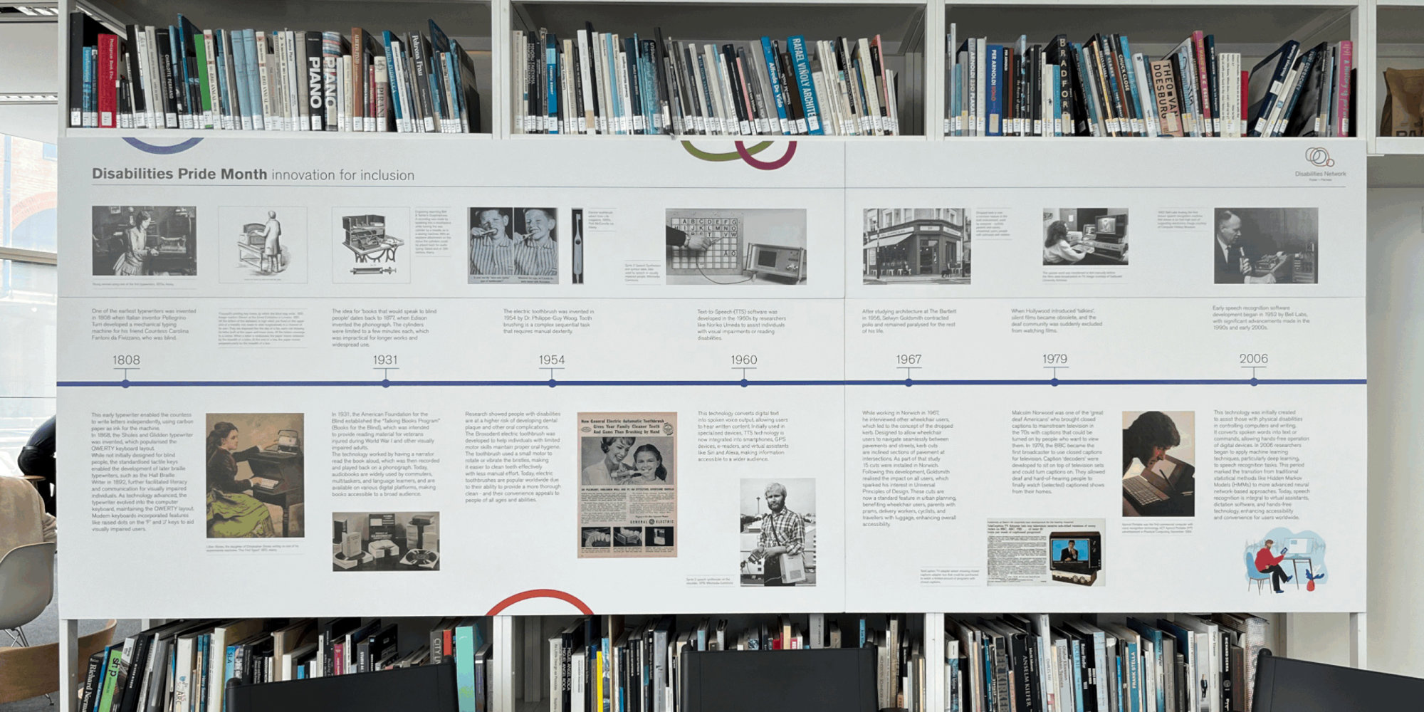 Eva Tisnikar, Architectural Researcher at Foster + Partners put together a timeline mapping the development of tools and devices that were originally designed to assist people with disabilities, but are now widely used by everyone. From typewriters (dating back to 1808) and dropped kerbs (1967), to electric toothbrushes (1954) and audio books (1931), Eva’s research acknowledges the original context that drove these inventions and their ensuing wider contribution to everyday life.