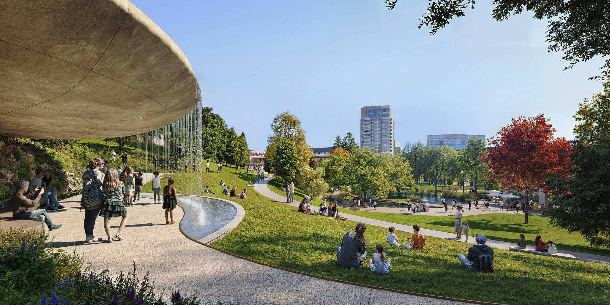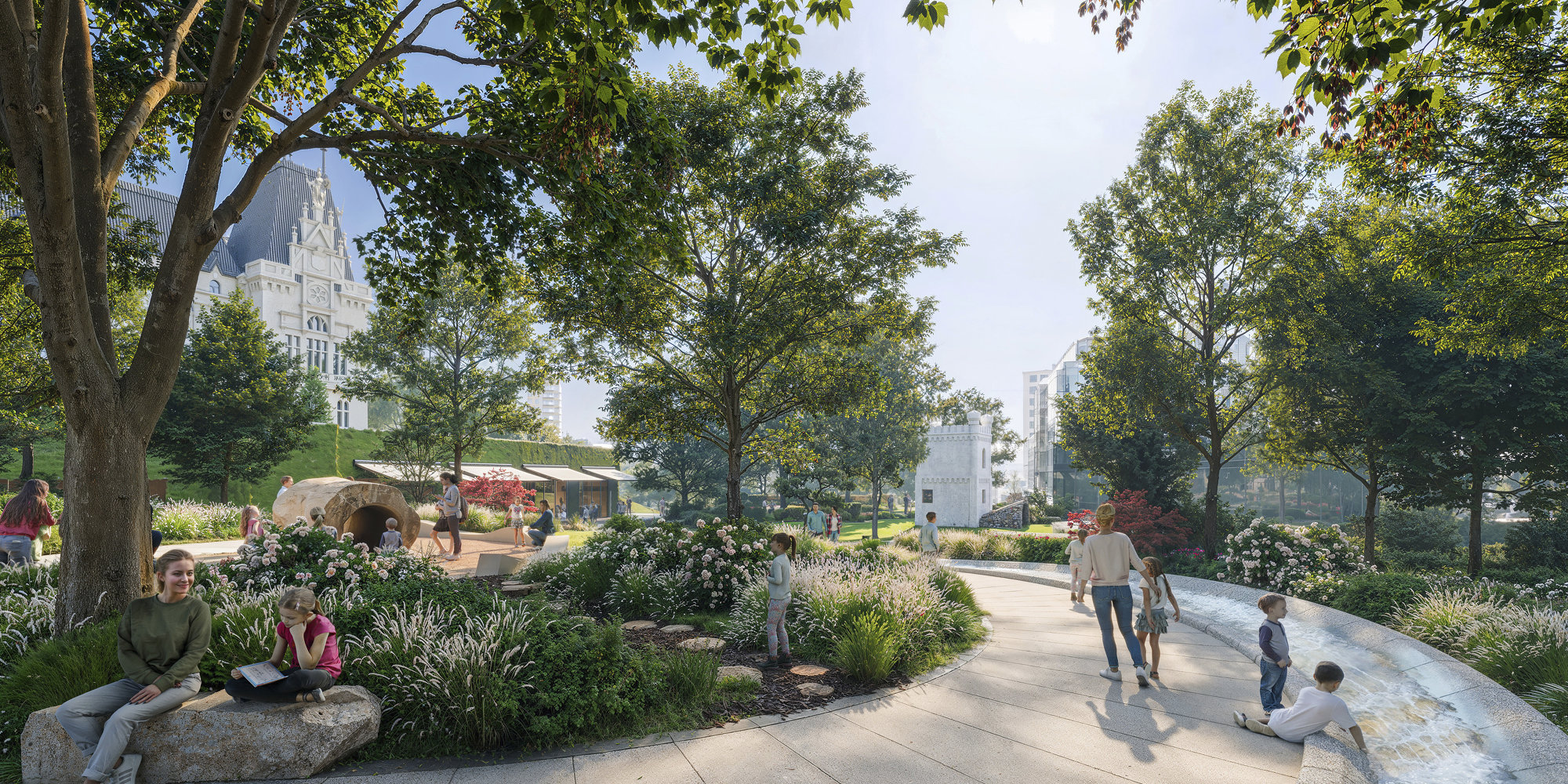 The neo-Gothic Palace of Culture is located at the centre of the masterplan. The practice’s design celebrates the palace by incorporating new landscaped areas, which unify both sides of the site, and creating a green entranceway from Stefan cel Mare Boulevard. The landscaping includes spectacular water features, sloping lawns, interactive play areas for children, and outdoor event spaces, which provide engaging and relaxing environments for visitors to spend time in. Archaeological remains and historic features are carefully preserved within the landscape for future generations.