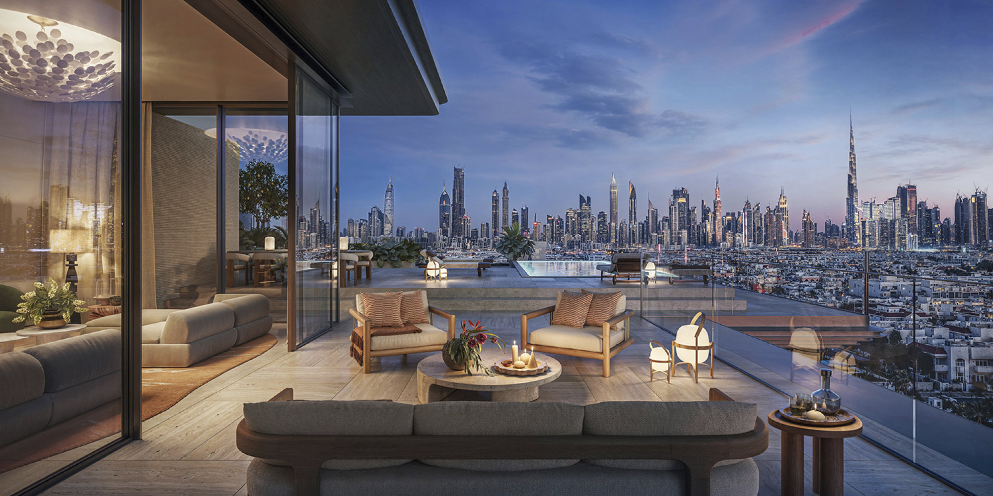 The development’s refined material palette, featuring natural stone and bespoke metalwork, complements one of Dubai’s oldest residential neighbourhoods and works in harmony with the natural landscape.