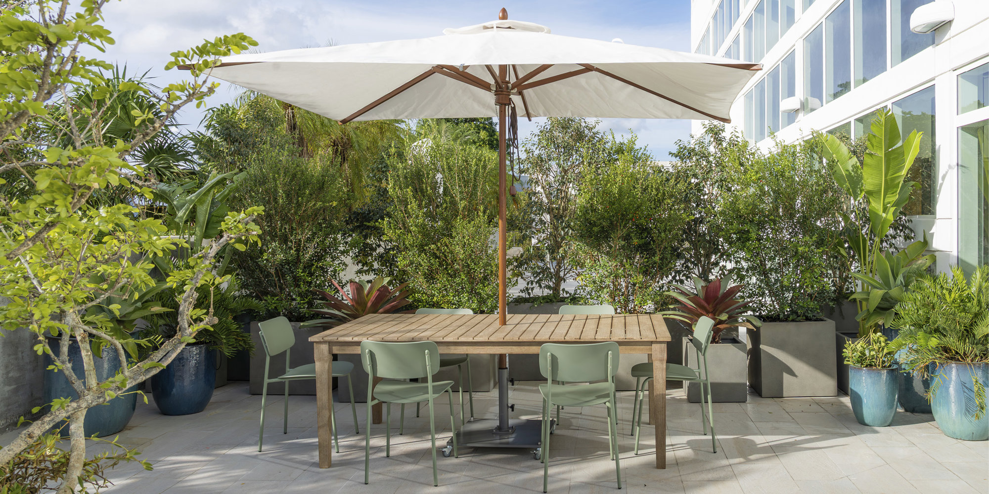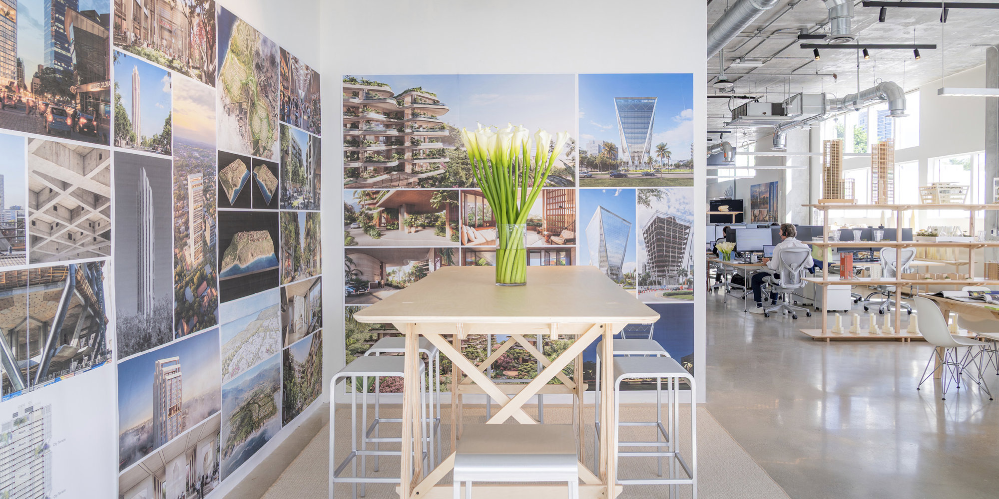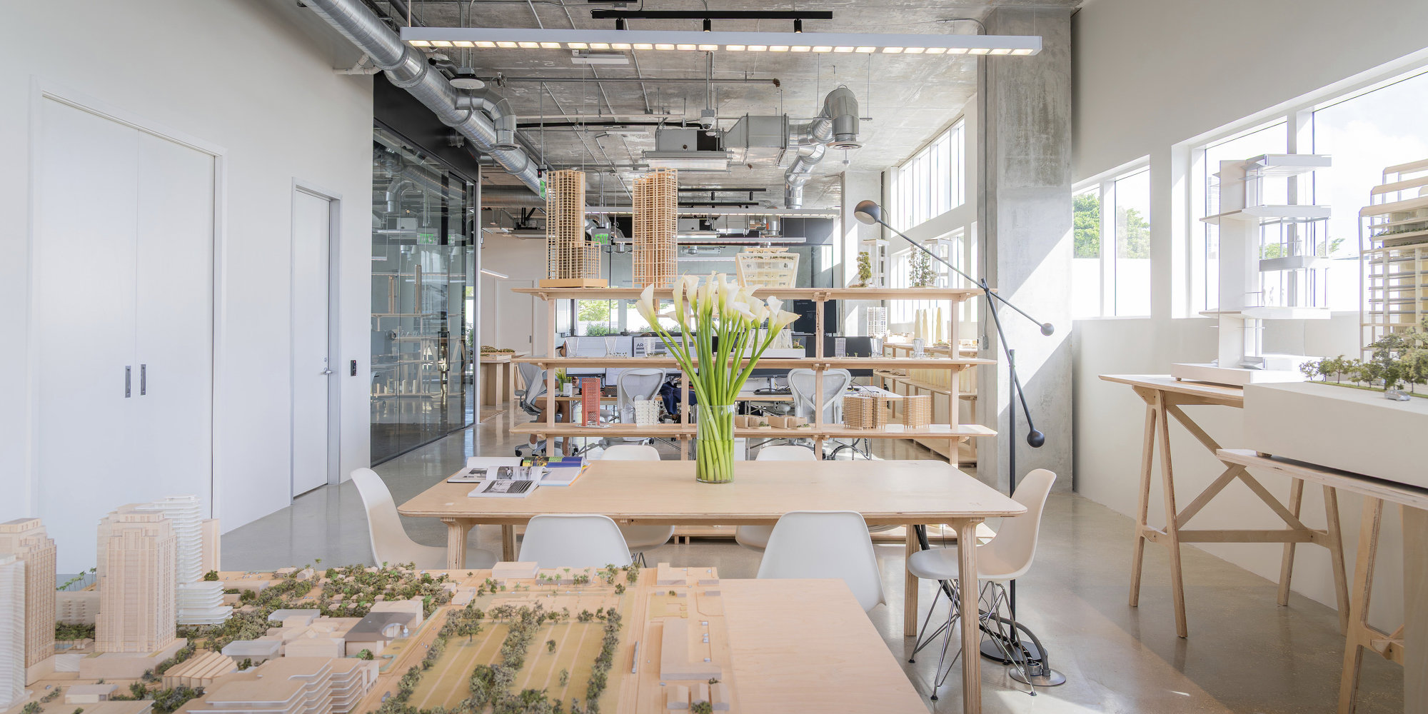 The team in Miami – led by Juan Frigerio – occupies the fourth floor of a building on 41st street. Their open workspace features tall ceilings, polished concrete floors, meeting rooms, and a lush terrace with outdoor seating. The studio will maintain a permanent exhibition of models, with shelving and tables built in collaboration with the University of Miami’s School of Architecture Model Shop.