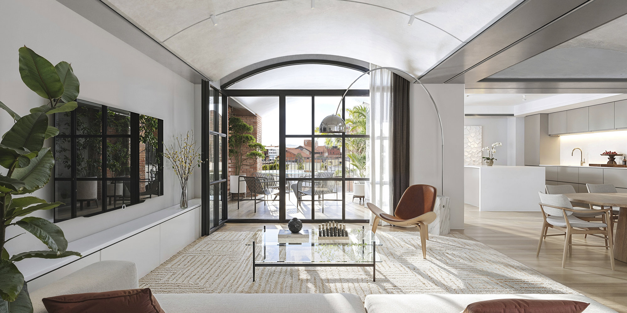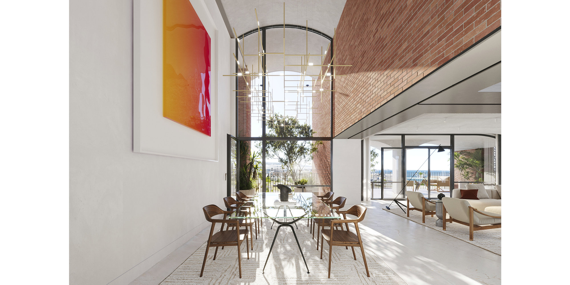 Every space is designed to create unity between the outside and the inside. The terraces are an extension of the inside living areas, with their vaulted ceilings creating ample shade and protection from the elements, while also providing essential privacy to residents and guests alike. Sensitively incorporating elements from the nineteenth century vernacular of the brewery, such as the red-brick façades, vaulted ceilings, and arched metal-framed windows synthesises the architectural language of the site’s history into the development’s future, creating a harmonious dialogue between the two.