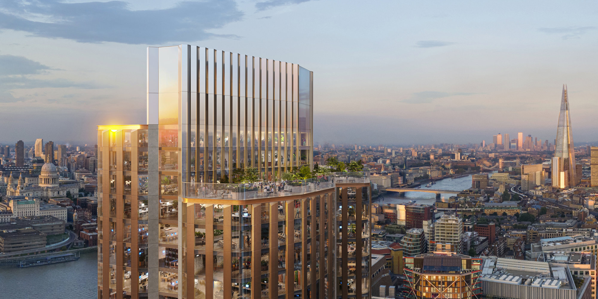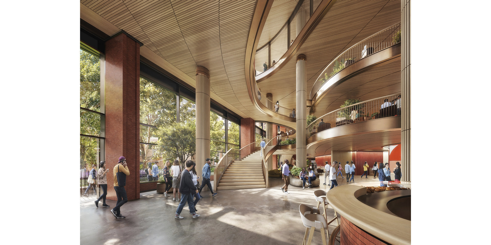 The office building offers a next-generation workplace, with sustainability woven through the design. By placing occupant wellbeing and sustainability at its heart – and including outstanding daylighting and sky garden amenities – the proposal will provide the spaces, services and activities that make people, places and businesses thrive. A garden every three floors brings greenery to the façade but also enhances connectivity with nature. The mixed-use nature of The Round and the multi-level amenity spaces encourage social interaction.