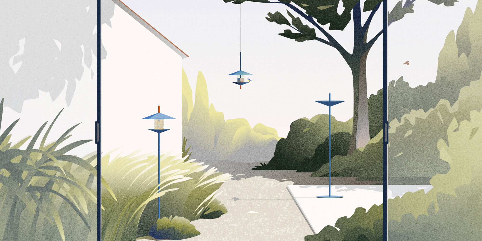 Unlike traditional bird feeders, Ori introduces a bold, graphic presence that can either contrast or blend beautifully with natural surroundings, redefining outdoor accessories as sculptural statements.