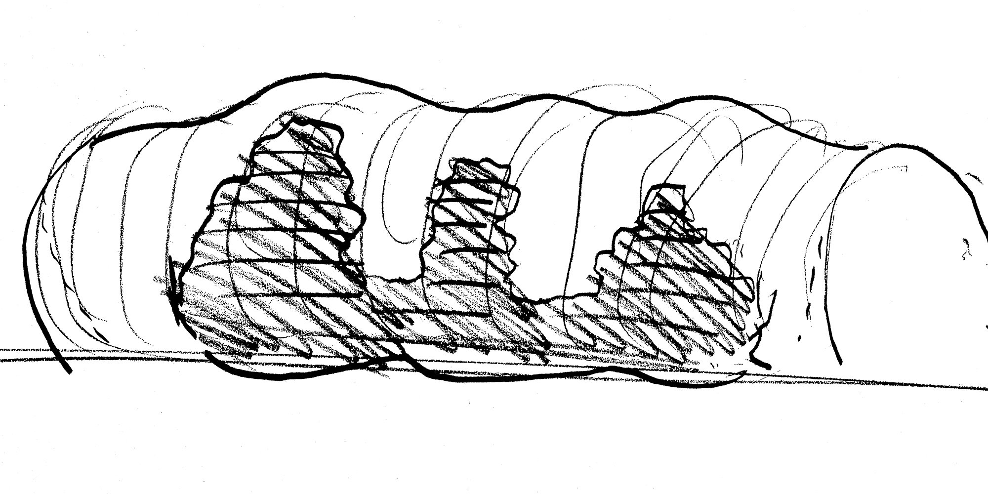 The scope of the brief is refined and rigorously tested by developing different diagrammatic options for the arrangement of the building.
