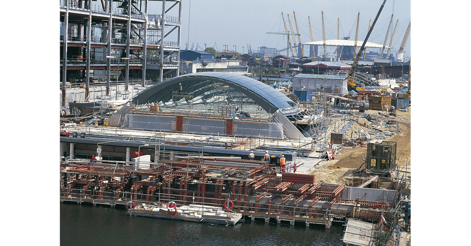 The Canary Wharf development was built on the site of the former West India Docks, near the Isle of Dogs in East London. Our specific site contained one of the historic docks, allowing us to use a ‘cut and cover’ methodology of construction, as the required space below ground level (the ‘cut’) already existed. A major challenge was sinking our station box into the former dock while combating uplift, caused by the station effectively floating, which could counteract its weight and cause structural failure. This involved a careful design and technical engineering process, including the use of anchoring systems to secure the station in place.