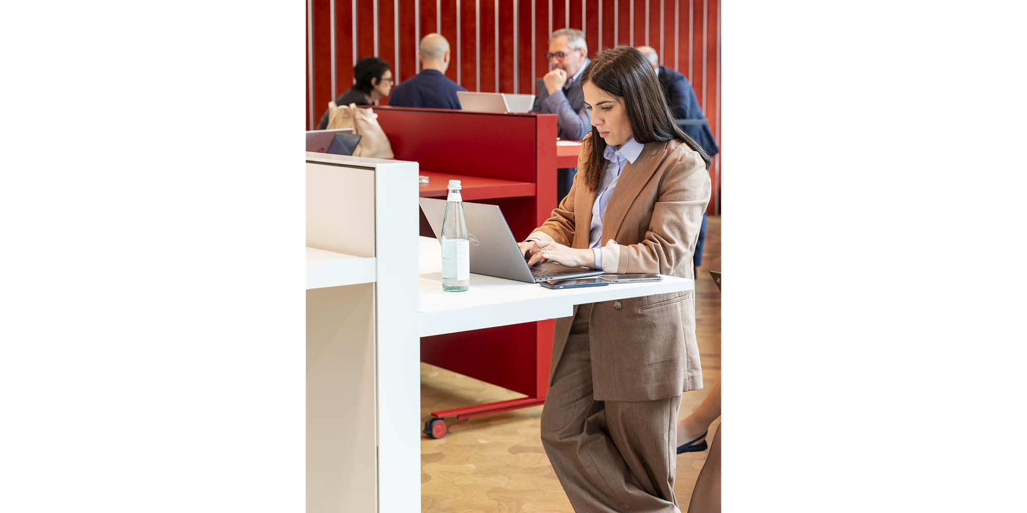 The Z desk is not tethered by a power cable, meaning it can be moved and reconfigured with ease. Workstations can be placed alongside each other, to create a longer wall through the office, or stand alone for individual working.