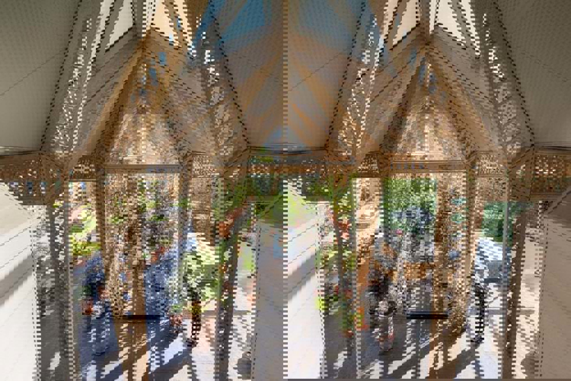 The domestic scale of the centre and the desire for a space that feels warm and natural led to the selection of timber as the primary building material. Forest Stewardship Council certified timber was chosen for its sustainable and structural properties, and cost and carbon efficiency, but also for its feel and aesthetic. The main frames are made of Laminated Veneer Lumber, arranged such that the grain of the wood is aligned with the primary axis of the forces in each member. This results in a structural material that is stronger and more reliable than ordinary softwood, and therefore reduces the amount of material required to perform at the required structural level. The trusses were milled using computer numerical controlled routers; the fabrication information was transferred directly from designers to manufacturers via three-dimensional computer models. Designed to reflect the magnitude and orientation of the loads acting on the members, any portion of the beam that was superfluous to its structural requirement was removed, resulting in the unique lattice structure.