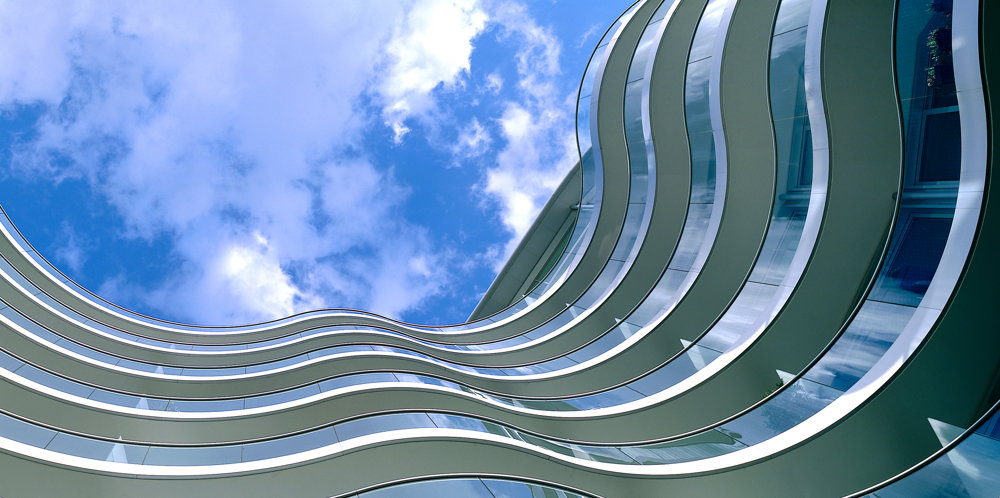 The highest levels of the tower contain 105 luxury apartments, with cantilevered terraces and fully glazed corners that offer 15-meter-wide panoramic views out to sea. Every room is naturally ventilated and optimised for energy consumption.