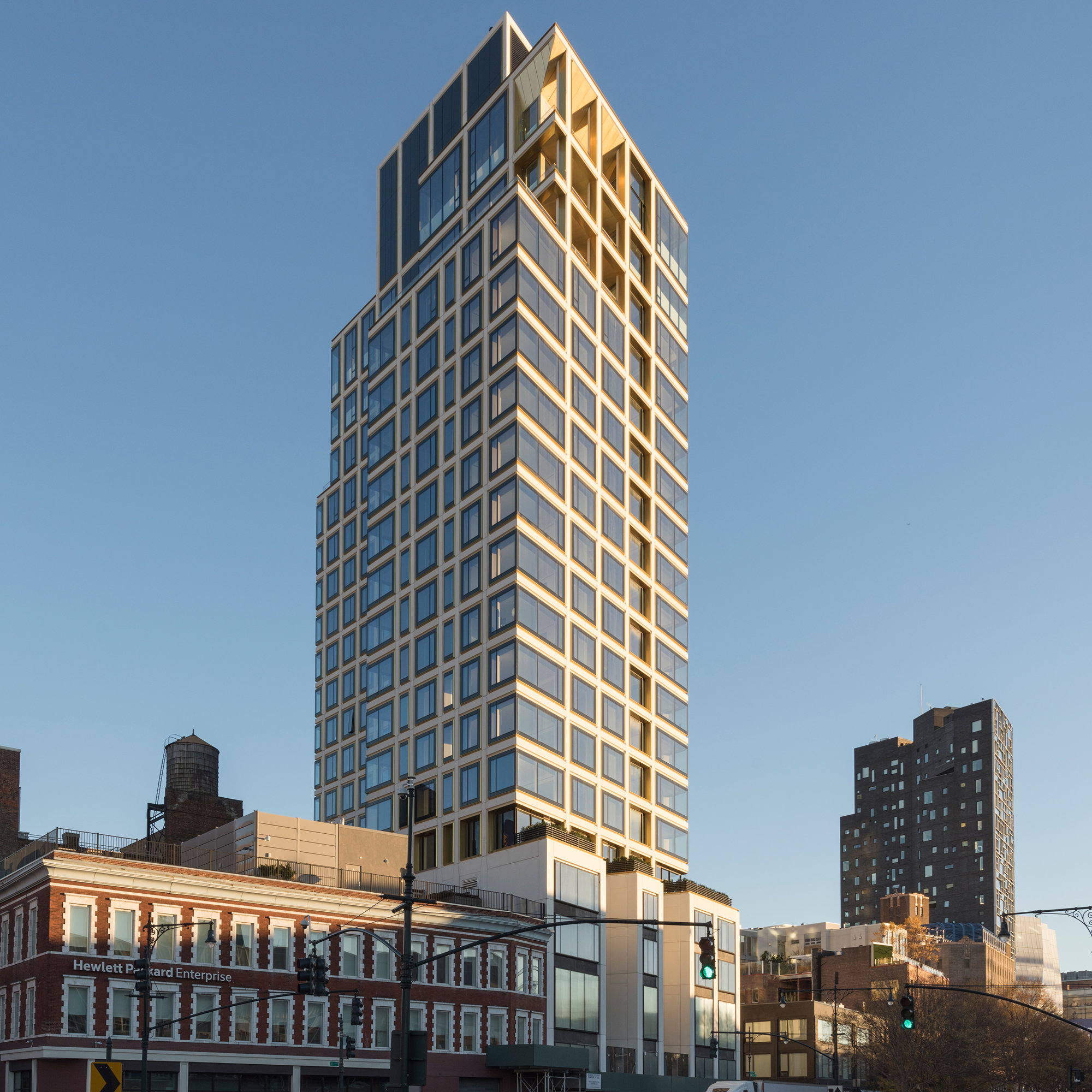 The planned 19-storey residential tower at 551 West 21st Street is in the heart of the Chelsea Arts District, the centre of the international art market and home to more than 200 galleries. Located at the corner of 11th Ave and 21st Street, the site is also within easy reach of the Highline and Hudson River Parks, Chelsea Piers and Market. The tower’s design responds to this unique urban context, creating light, spacious residences with panoramic views of the river and Midtown, while relating in scale to neighbouring buildings and drawing on the area’s industrial heritage in its materials and details.