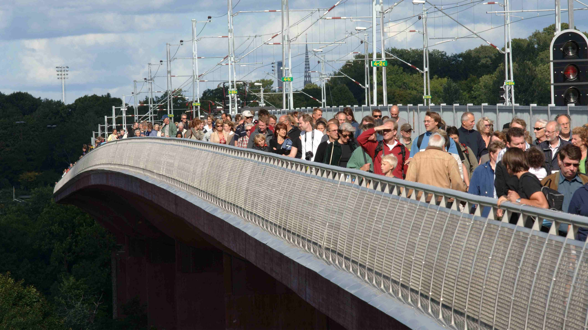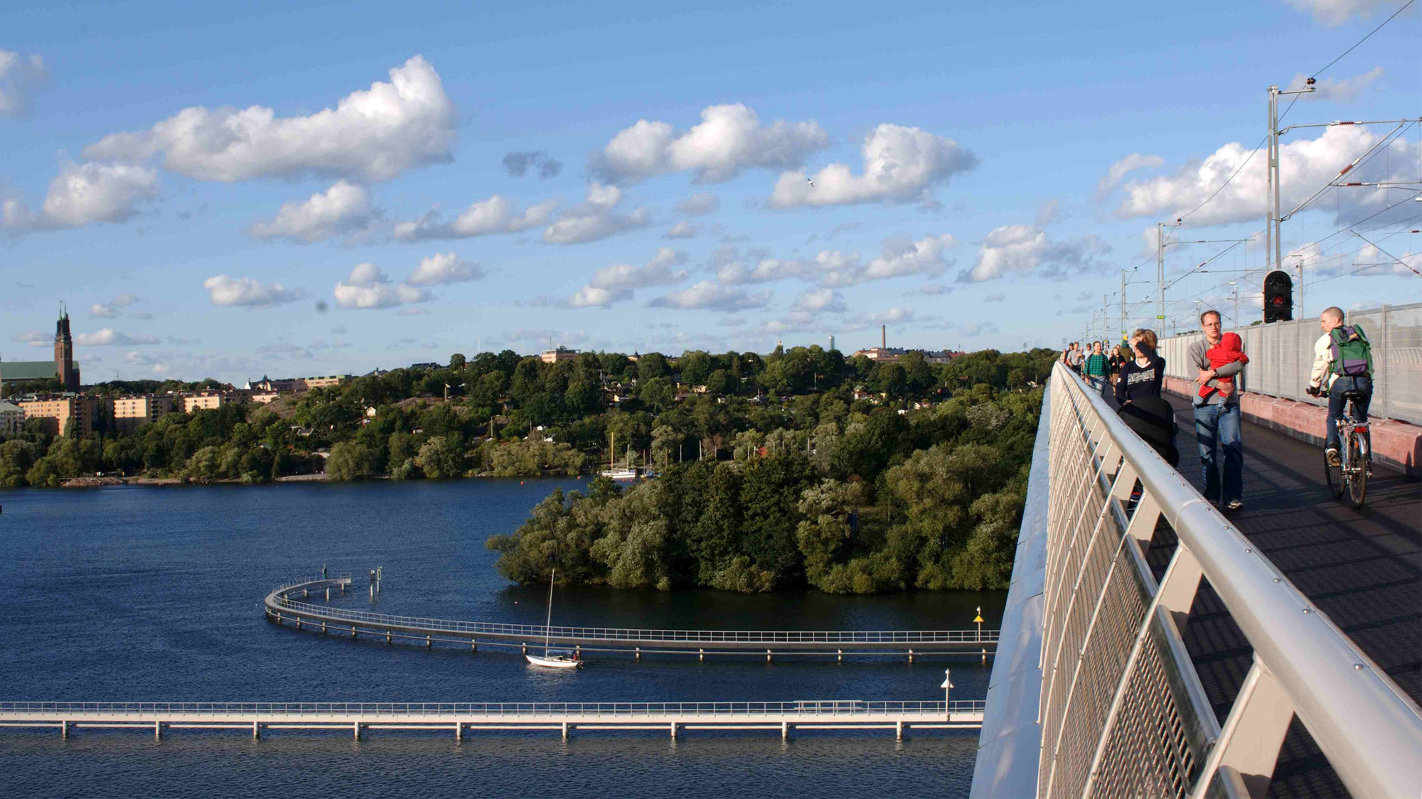 The new Arsta Bridge arrives as regeneration takes place on much of the adjacent brownfield sites overlooking Arstaviken, including a new residential and commercial scheme.