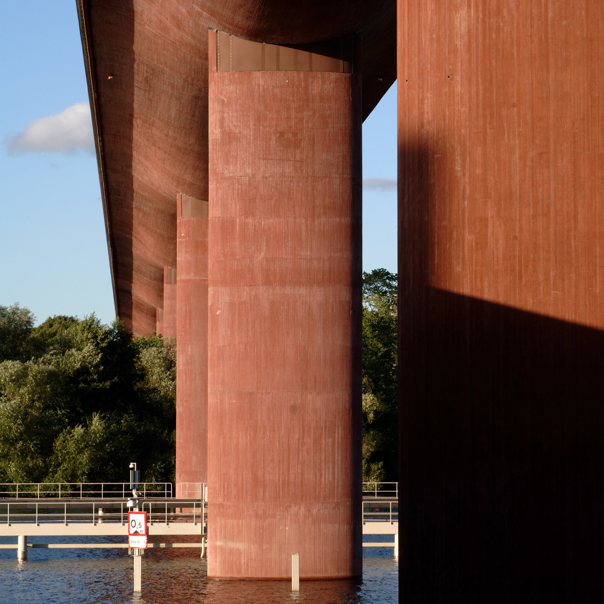 Stockholm's Arsta Bridge marks a historic moment in the expansion and modernisation of Sweden's rail network, the elegant bridge sweeps across the lush Arstaviken bay, its rhythmic contours interacting with the existing 1929 bridge. The organic wave form is a sensitive response to the surrounding landscape and the vibrant red pigment of the concrete resonates with the Falu-red timber used in Stockholms traditional buildings. At 833m long, the bridge will supplement the existing bridge, dramatically increasing capacity with minimal impact on the surrounding landscape.