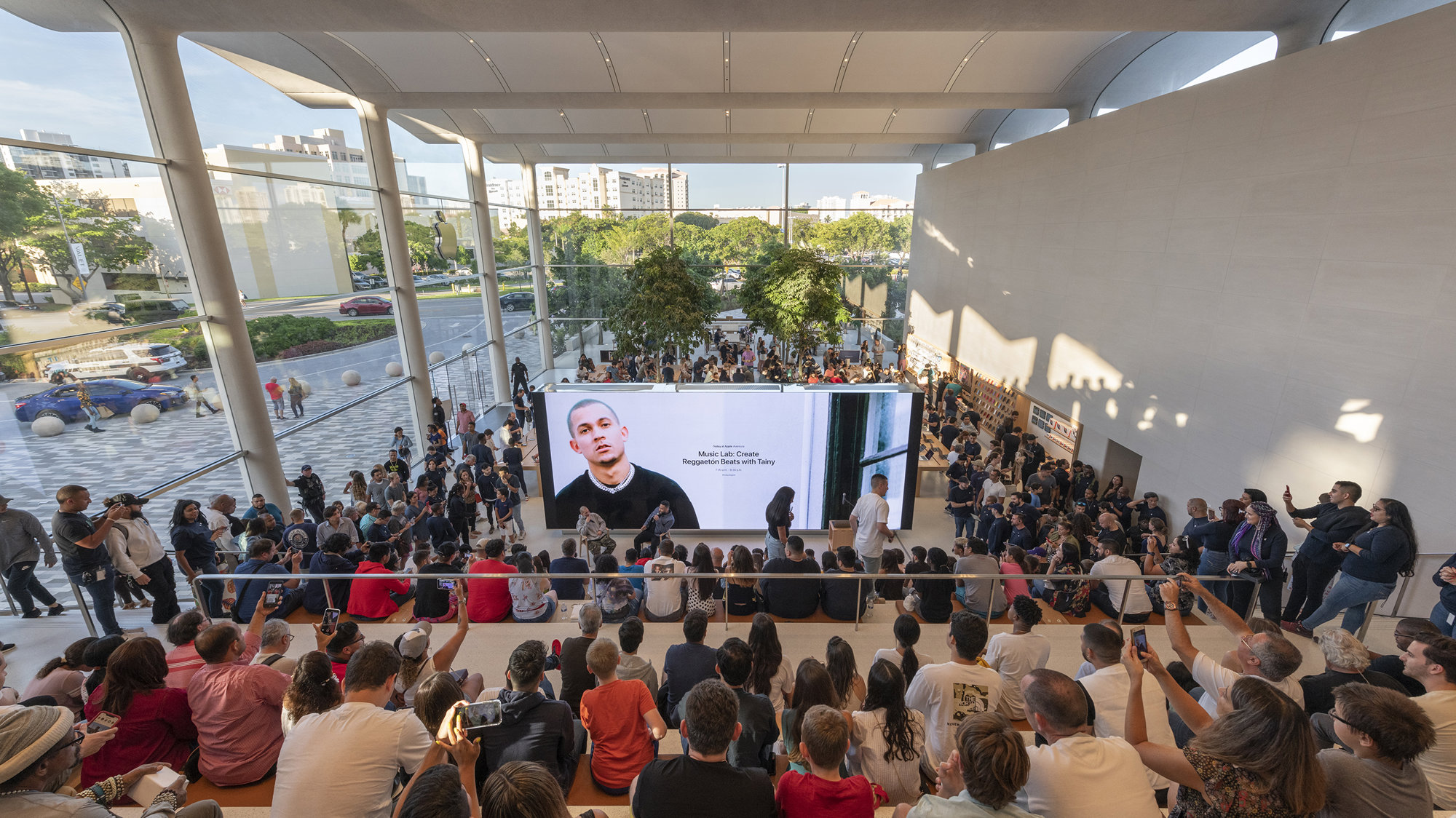 Apple Aventura embodies Miami’s spirit of openness and generosity, bringing people together under an undulating vaulted roof that is reminiscent of the city’s nautical and architectural roots. The materiality and flowing spaces are inspired by the region’s Art Deco buildings, with the new two-level store creating a dynamic destination that nurtures creativity and innovation.