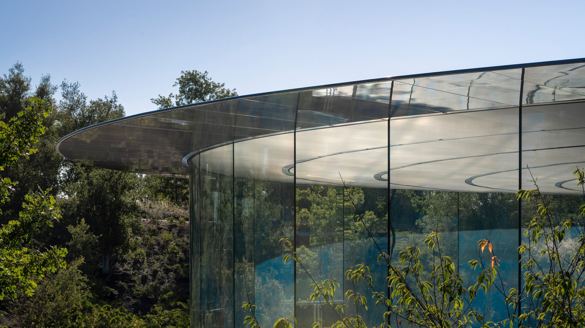 Apple Park places people at its heart, creating an ideal workplace for continued creativity, innovation and wellbeing. The campus is Californian in spirit: open and connected to nature and the product of a remarkable collaboration. Its landscape and buildings form a seamless whole: the Ring Building, Steve Jobs Theater, Fitness & Wellness Center, Visitors’ Center and South Parking are all encompassed by flowing parkland that enhances the buildings as places to socialise, exercise and work. Flexible and forward-looking, the architecture sits low amid tall trees, draws its energy from the sun and brings the invigorating views and fresh air from the park through its glass facades. Inspired by all of Apple’s endeavours, it has been designed with a deep care towards the environment as well as the company and its staff. The campus is powered by 100 per cent renewable energy, and is the largest LEED Platinum-certified office building in North America. The 71-hectare (175-acre) site was previously dominated by impervious surfaces. Today, the green space has been increased from 20 to 80 per cent, with over six kilometres (four miles) of walking and jogging trails. There are now over 9,000 trees on site, including indigenous oaks and orchards, as well as meadows, sports fields, terraces and a secluded pond.