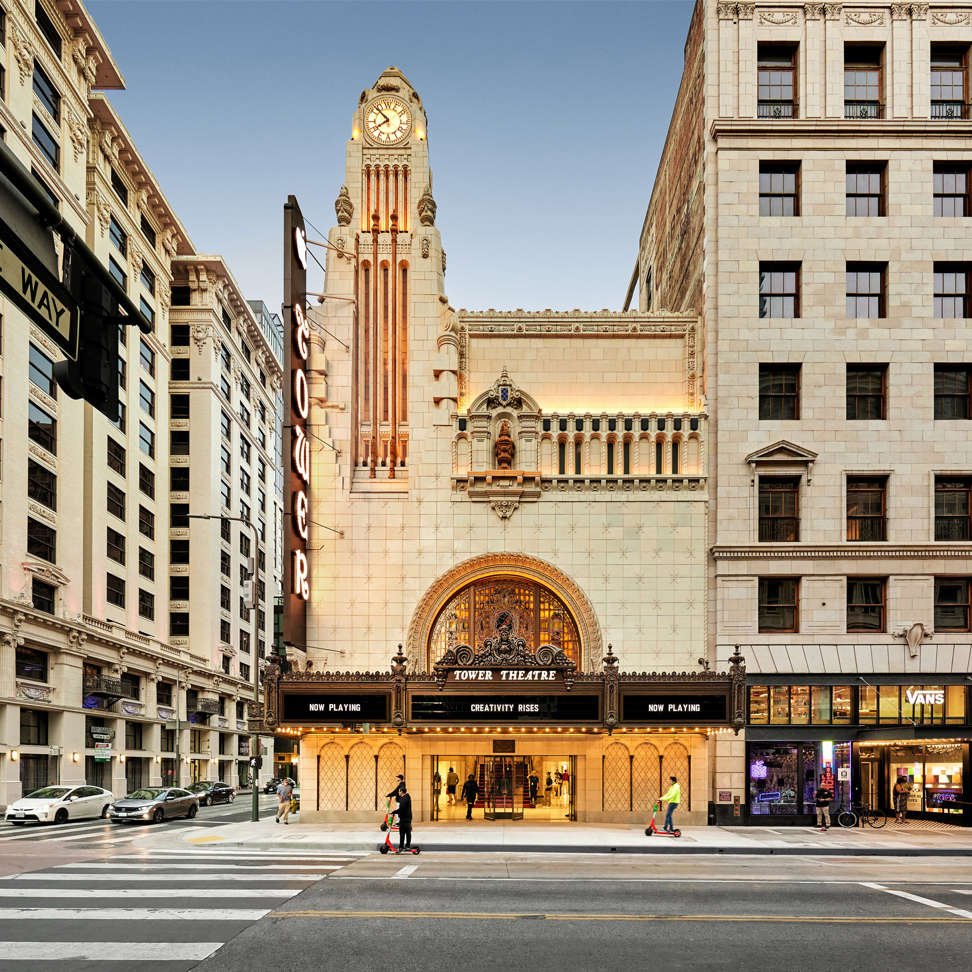 Designed in 1927 by prolific motion picture theater designer, S Charles Lee, Tower Theatre was the first movie theater in Los Angeles built to show talking movies. The design restores the distinctive clock tower and exterior terracotta facades, enhances historic interiors and improves the marquees and the Broadway Street elevation, while upgrading accessibility to ensure the building will survive and serve the community long into the future.