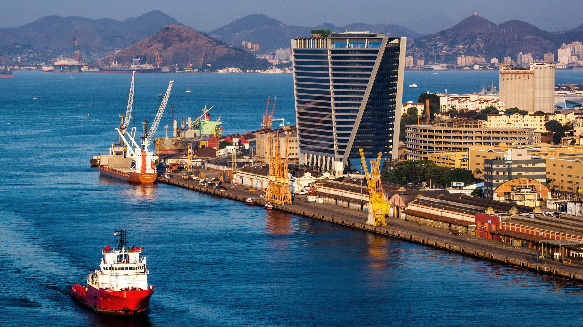 The AQWA Corporate project is an office development along the waterfront in Rio de Janeiro, Brazil, strategically located at the heart of the Porto Maravilha urban regeneration district. Situated within a landfill zone dating back to the 20th Century, the project is part of an extensive land reclamation in the historic port area of the city. Throughout its history, the area has been integral to the city’s development, and is where choro and samba music was born. The site is also close to the port region of Rio, which has been isolated for many years by the raised ‘Perimetral highway. The masterplan proposes to demolish part of this route and reintegrate the port – which still receives thousands of visitors every year – with the rest of the area. It will also restore parks, squares and other public spaces throughout the district, while rationalising the traffic flow and introducing new retail, commercial and civic spaces to create a vibrant district in the heart of Rio.