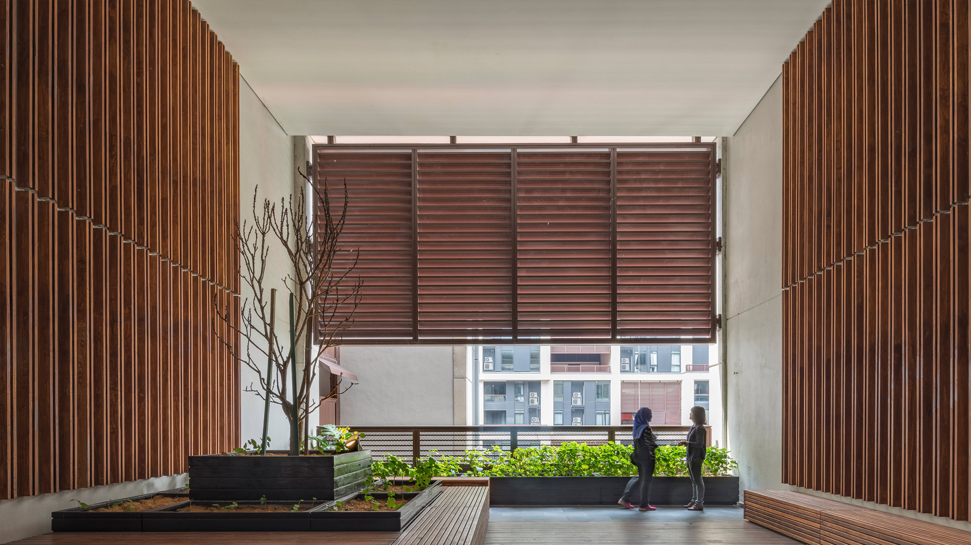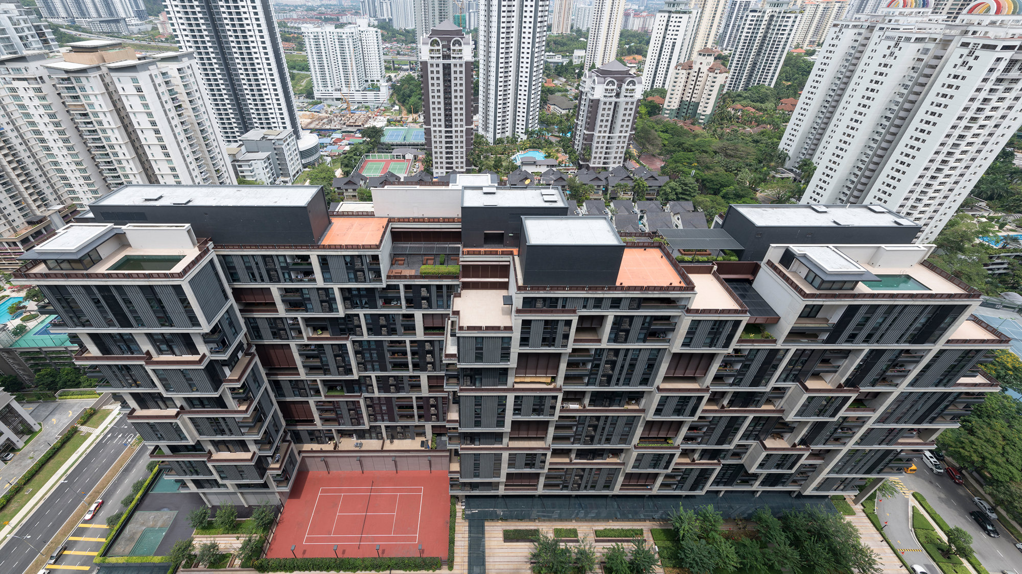 Providing a new social heart for the Mont’ Kiara district, Arcoris Mont’ Kiara is intended to benefit the wider community with new facilities, connections and civic spaces. Its two parallel volumes are centred on a landscaped public plaza, which is intersected by new pedestrian routes. The northern volume houses the residences, while the south-facing building contains a hotel, serviced apartments, offices and leisure facilities, as well as tiers of shops and restaurants at ground level. Natural ventilation is enhanced by the orientation of the parallel volumes, as well as by a series of voids within each block, which promote cross-ventilation, and horizontal brise-soleil provide shade.